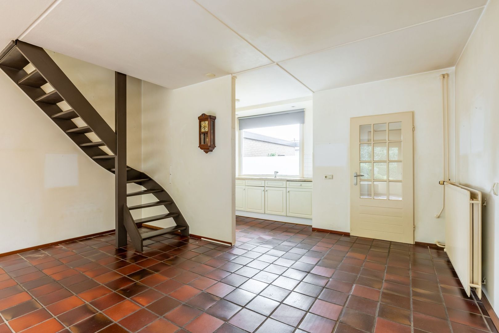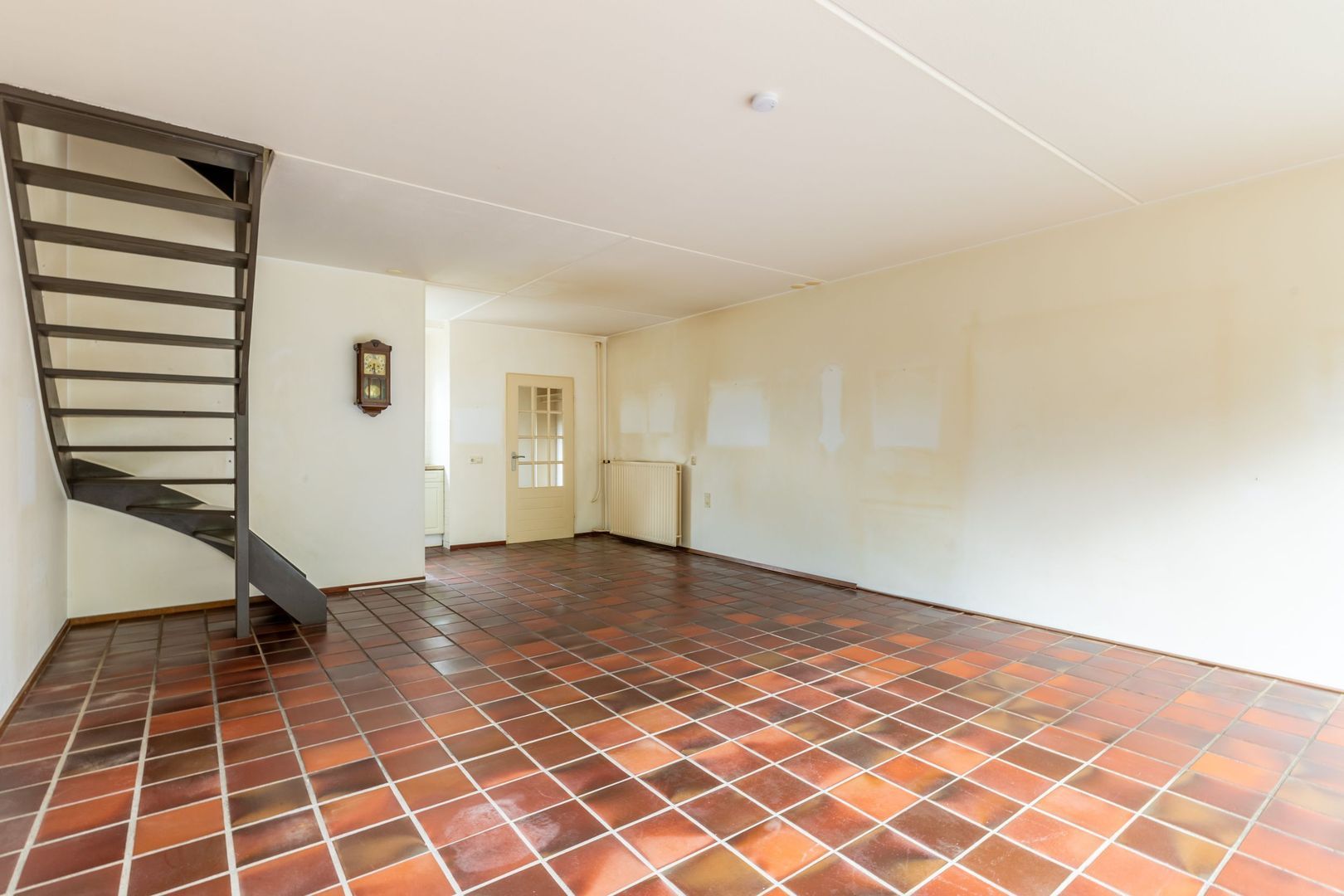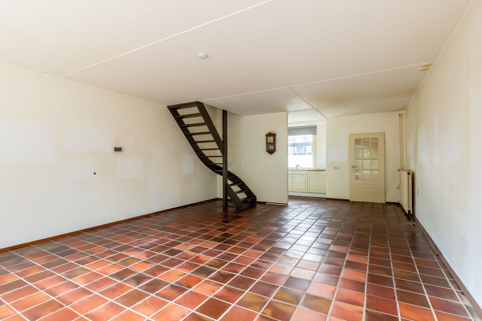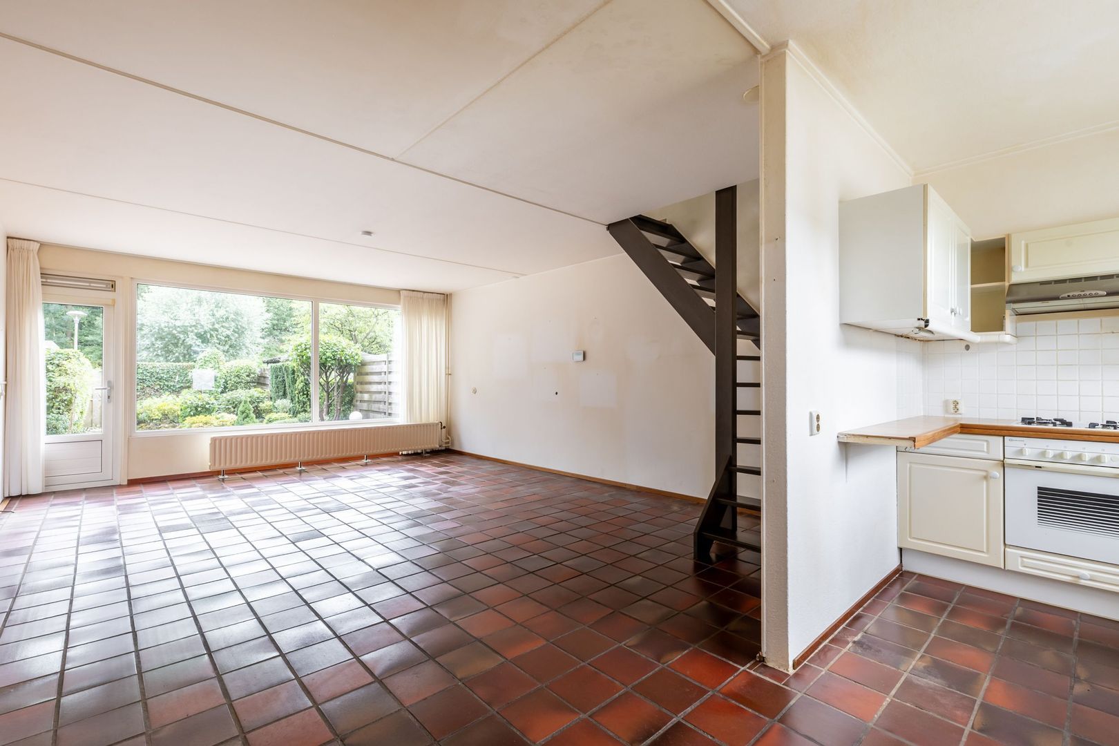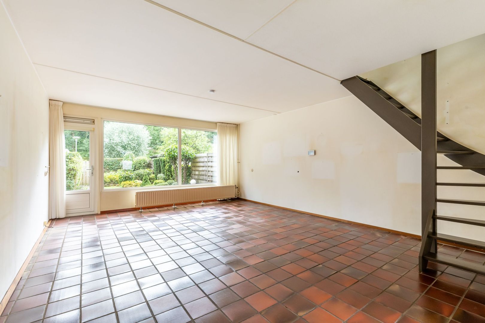 Deze tussenwoning is gebouwd in 1974, een periode waarin grote ramen en veel licht kenmerkend waren. Dat is wat opvalt bij het binnenkomen van de leefruimte.