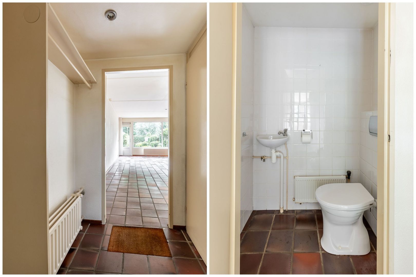 De indeling is als volgt: entree, hal met meterkast en toiletruimte.