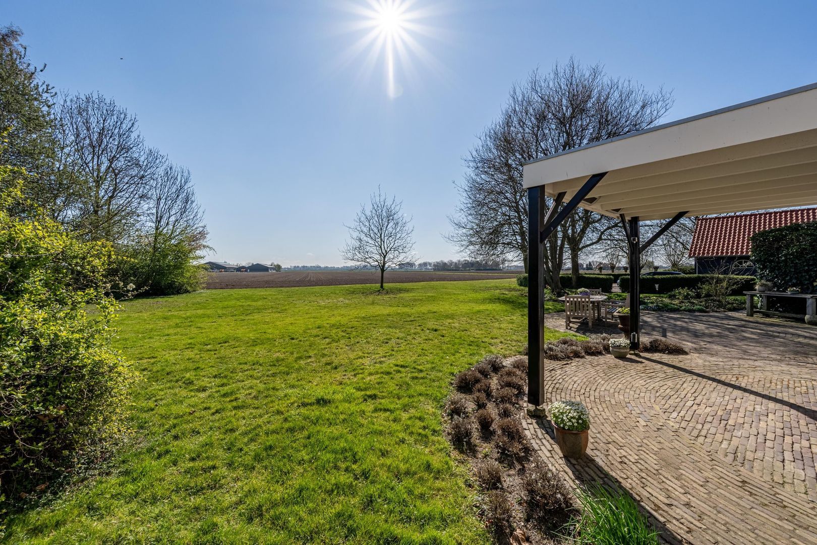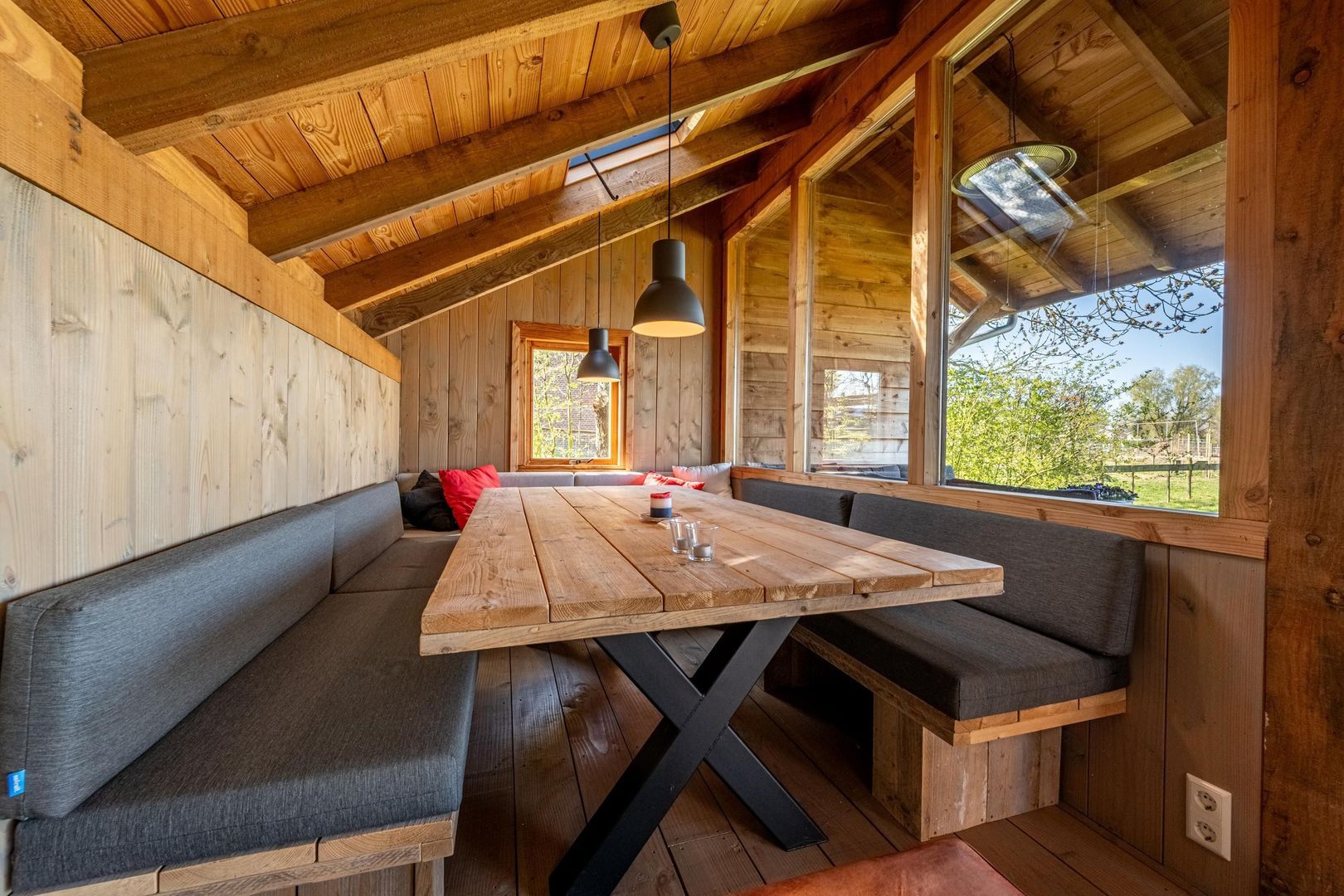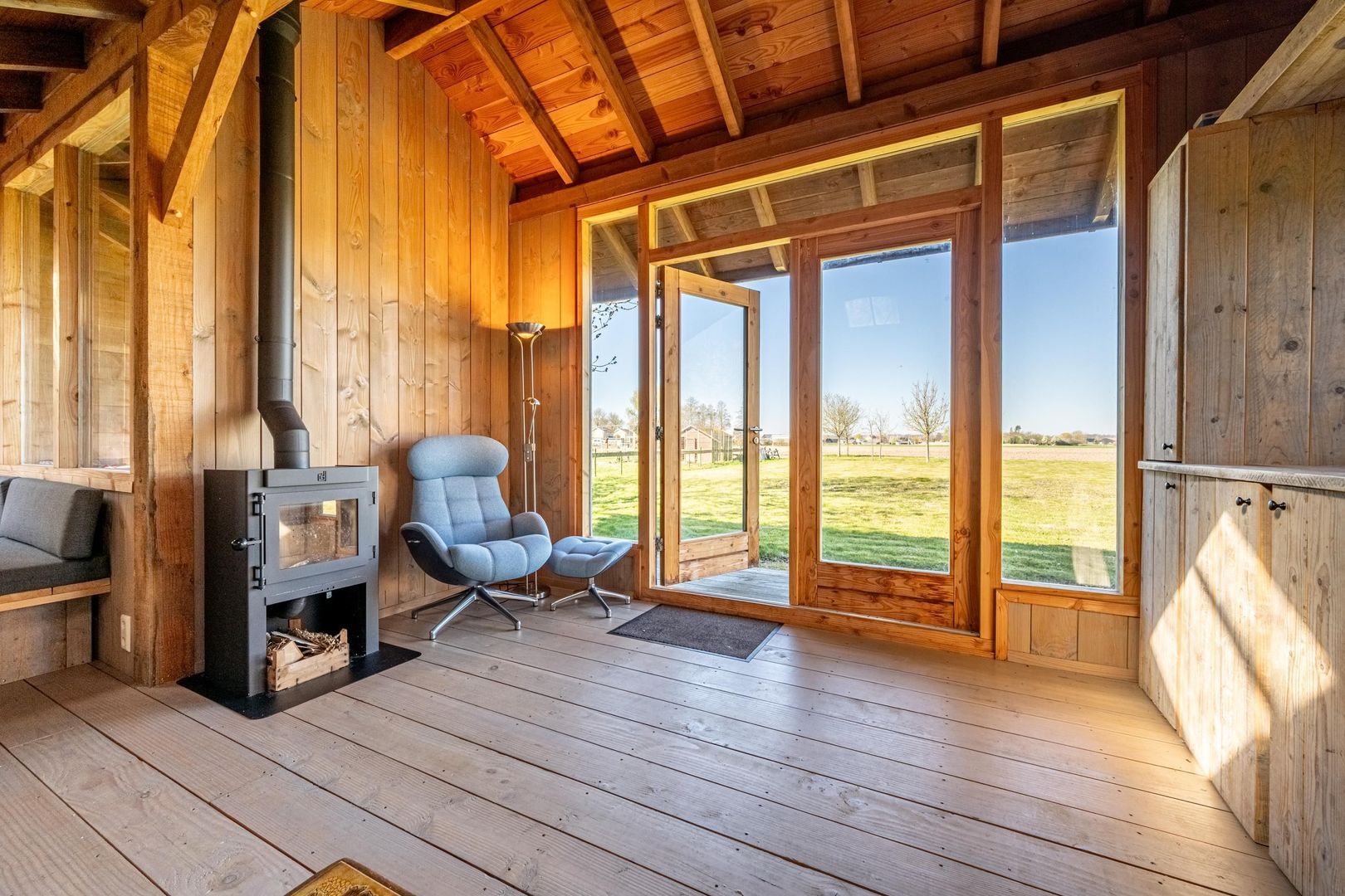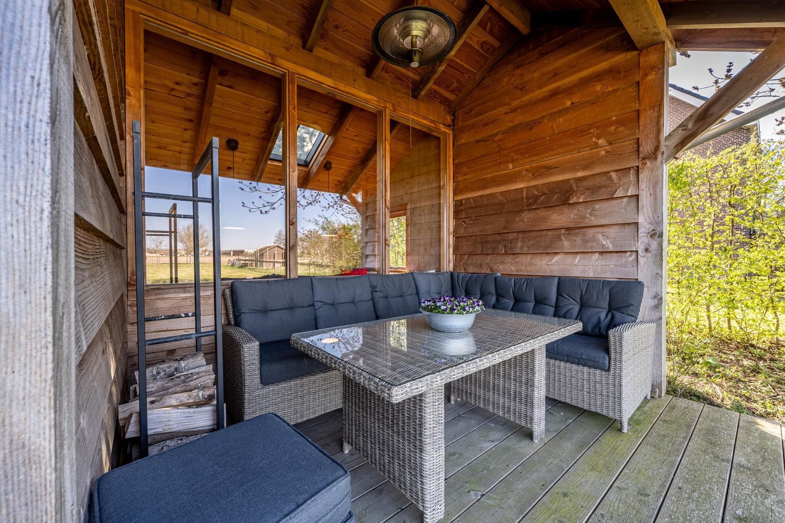 Aan de overkant van de dijk ligt ook nog een flinke tuin met fruitbomen. Hierop staat een bijzonder fraai tuinhuis met overkapping, dat in 2017 werd gebouwd. Ook hier kan weer genoten worden van een onbetaalbaar uitzicht, rust en ruimte.