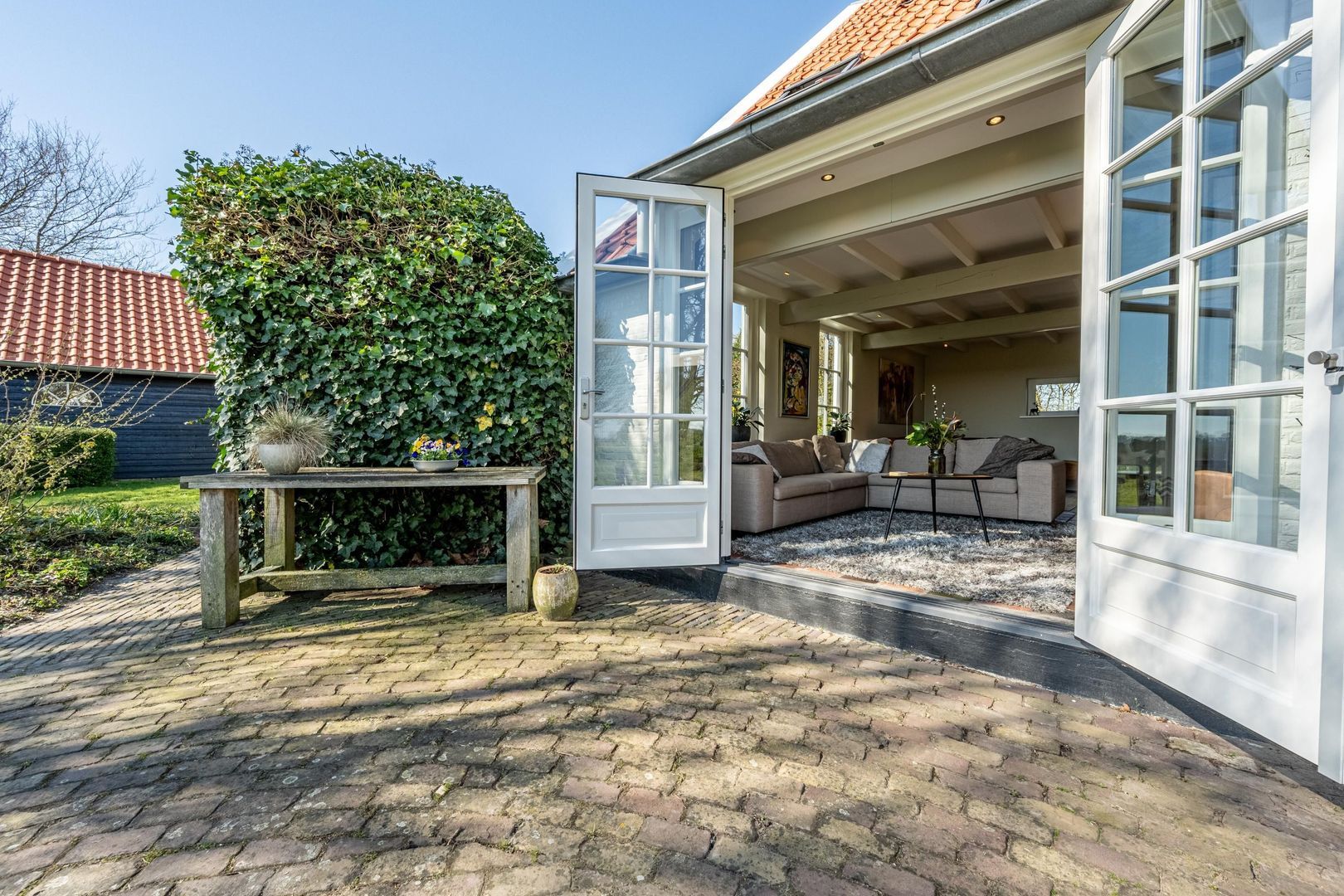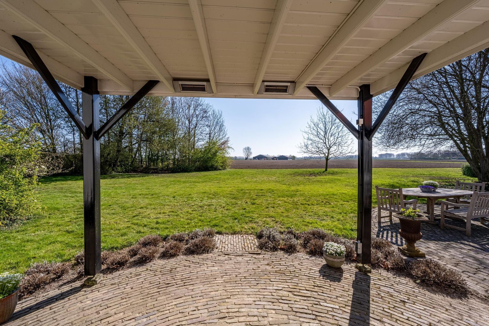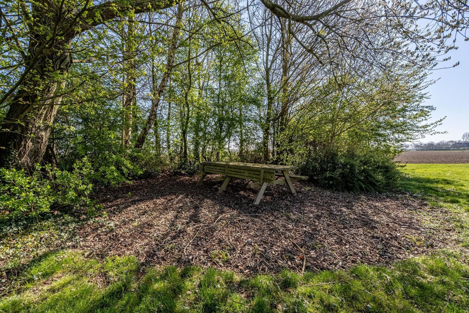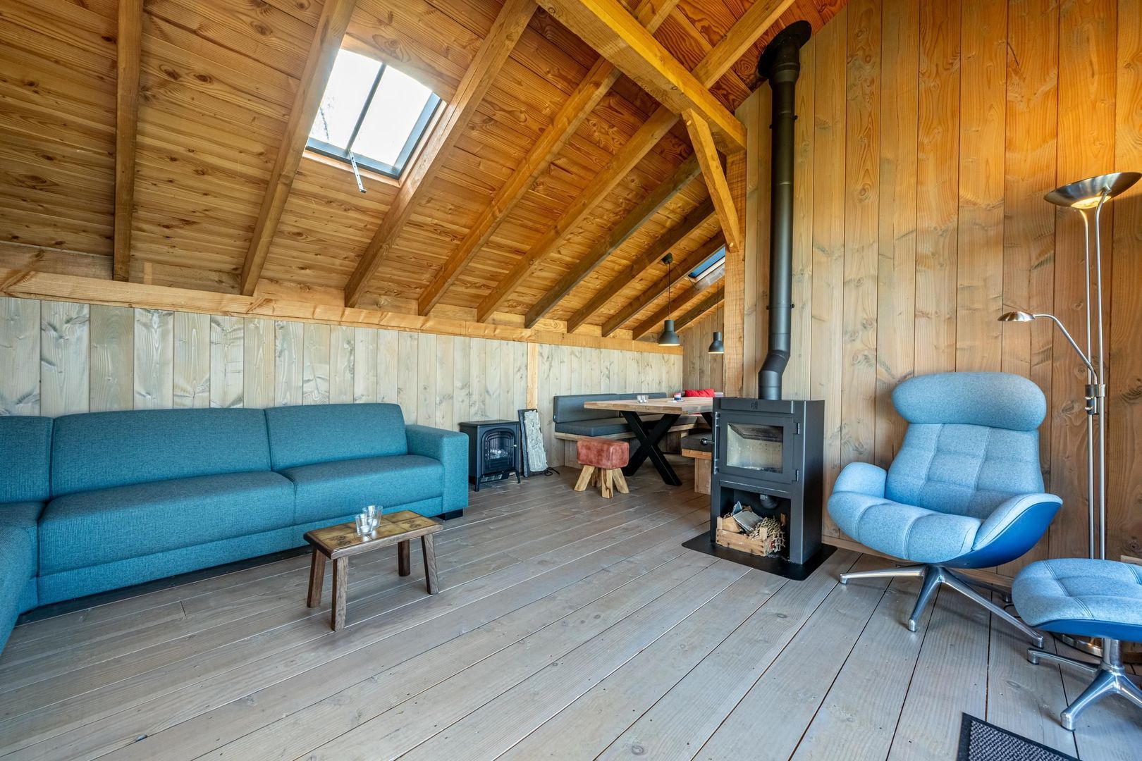 Aan de overkant van de dijk ligt ook nog een flinke tuin met fruitbomen. Hierop staat een bijzonder fraai tuinhuis met overkapping, dat in 2017 werd gebouwd. Ook hier kan weer genoten worden van een onbetaalbaar uitzicht, rust en ruimte.