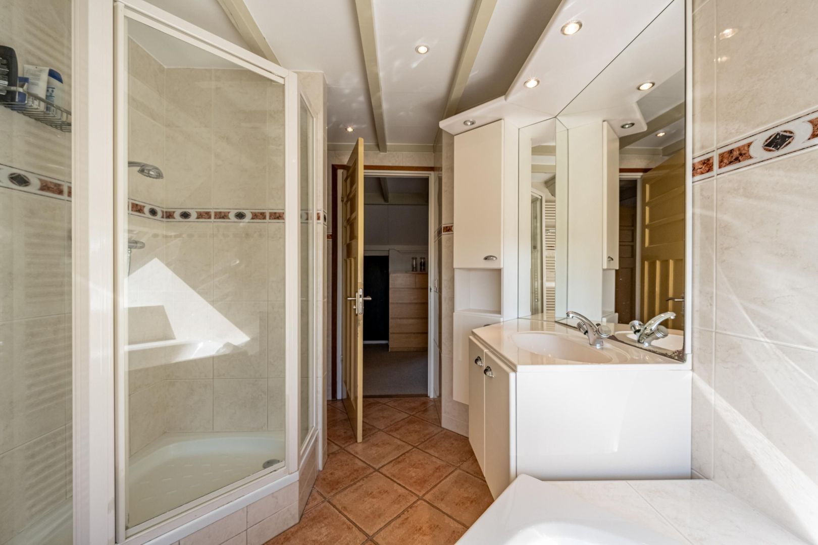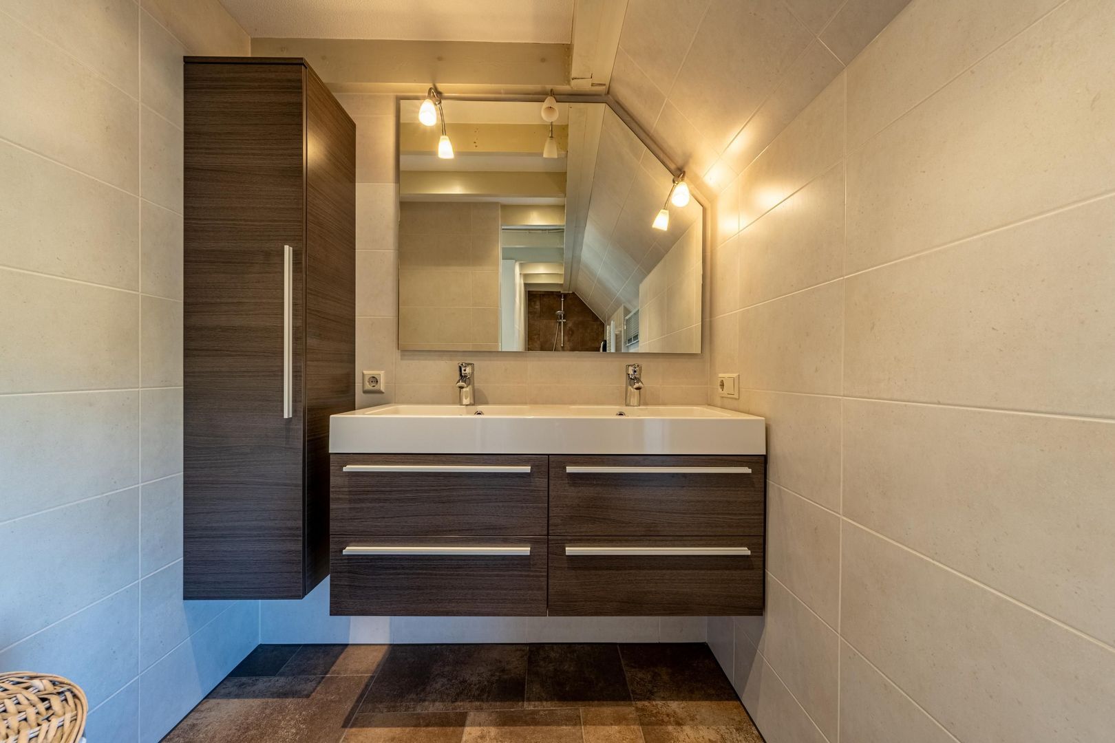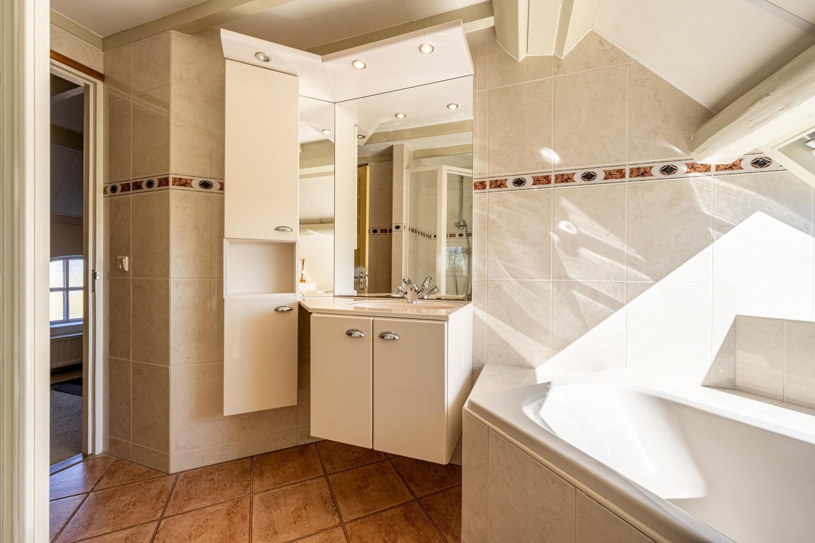 De tweede badkamer bevindt zich op de overloop en is uitgevoerd met een ligbad, douchegelegenheid, toilet en wastafel.