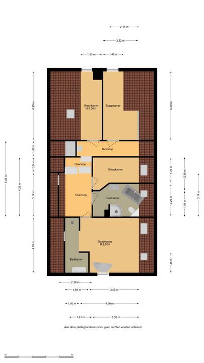 Op de eerste verdieping bevinden zich vier slaapkamers (eveneens split-level).