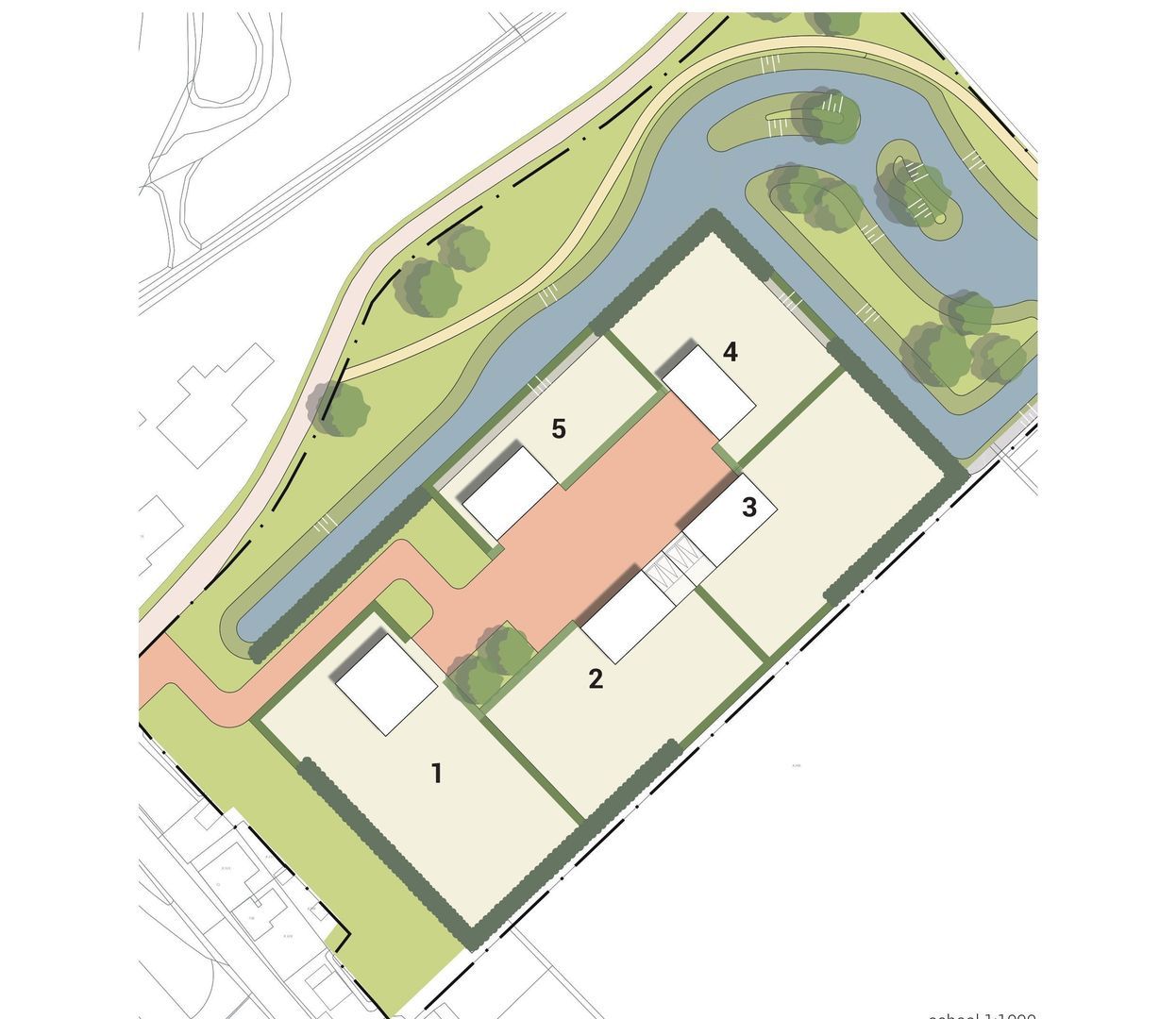 De kavels zijn alle bestemd voor de bouw van één vrijstaande woning per kavel. Het geheel van de bebouwing en het bijbehorend natuurgebied refereert aan een boerenerf.