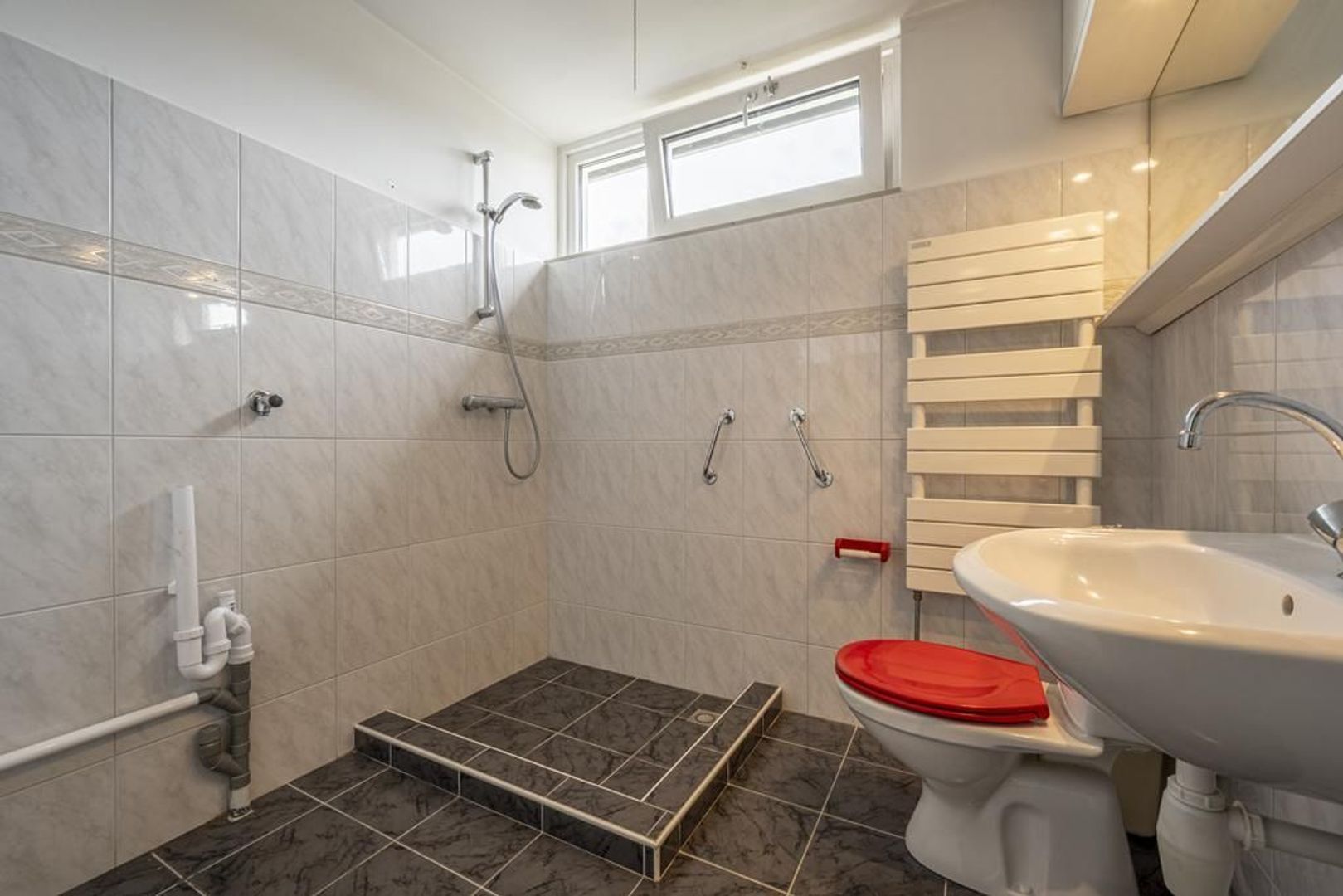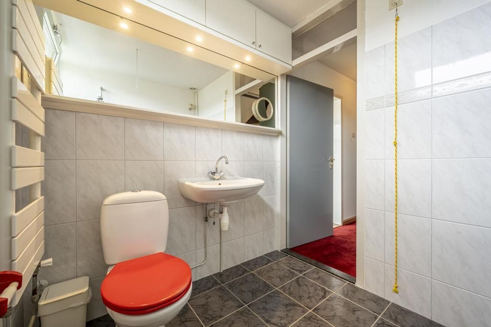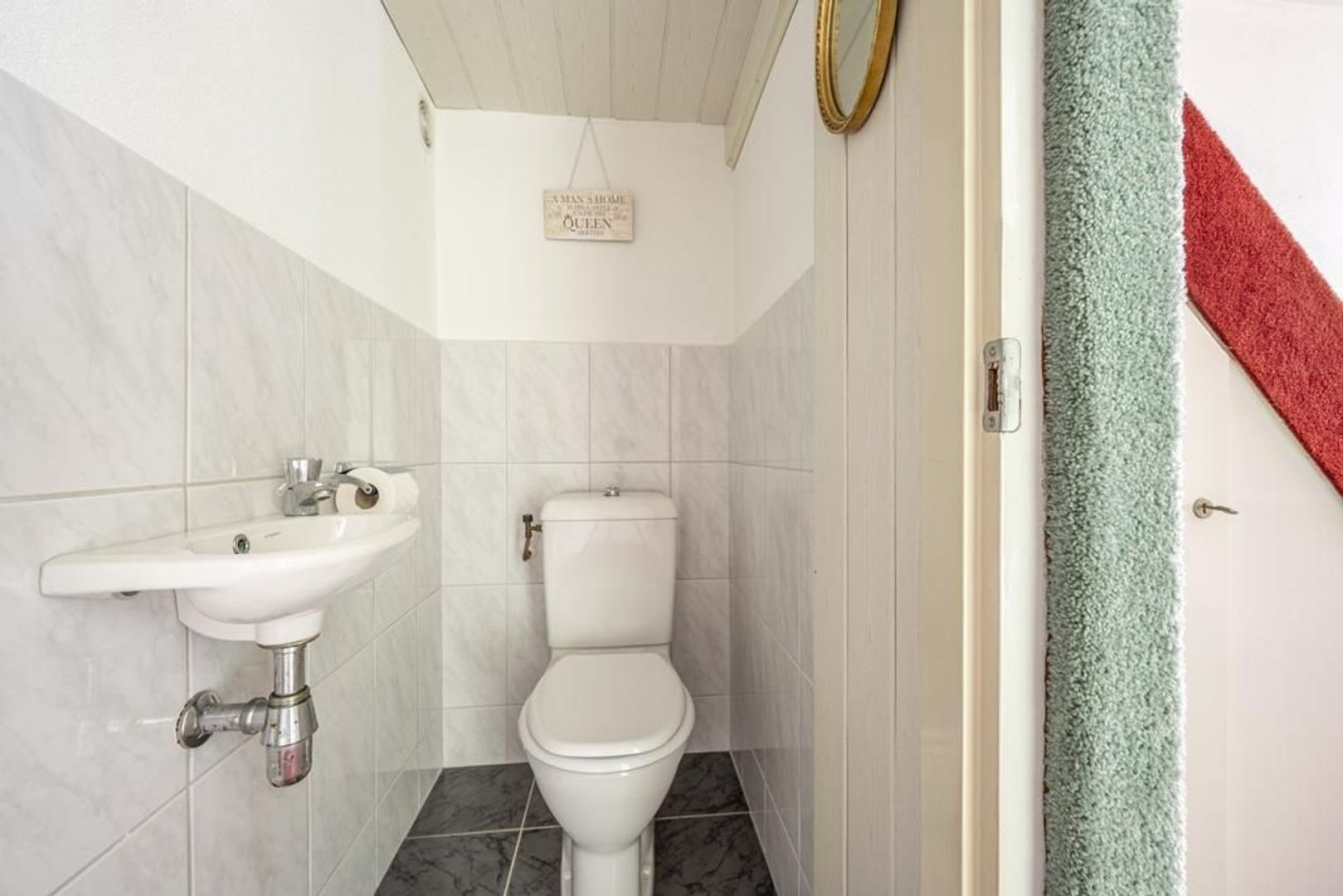 Op de eerste verdieping zijn drie slaapkamers en de badkamer. Deze is ingericht met een doucheruimte, een wastafel, een tweede toilet en de aansluiting voor de wasmachine. Het raam maakt ventileren met frisse buitenlucht mogelijk.