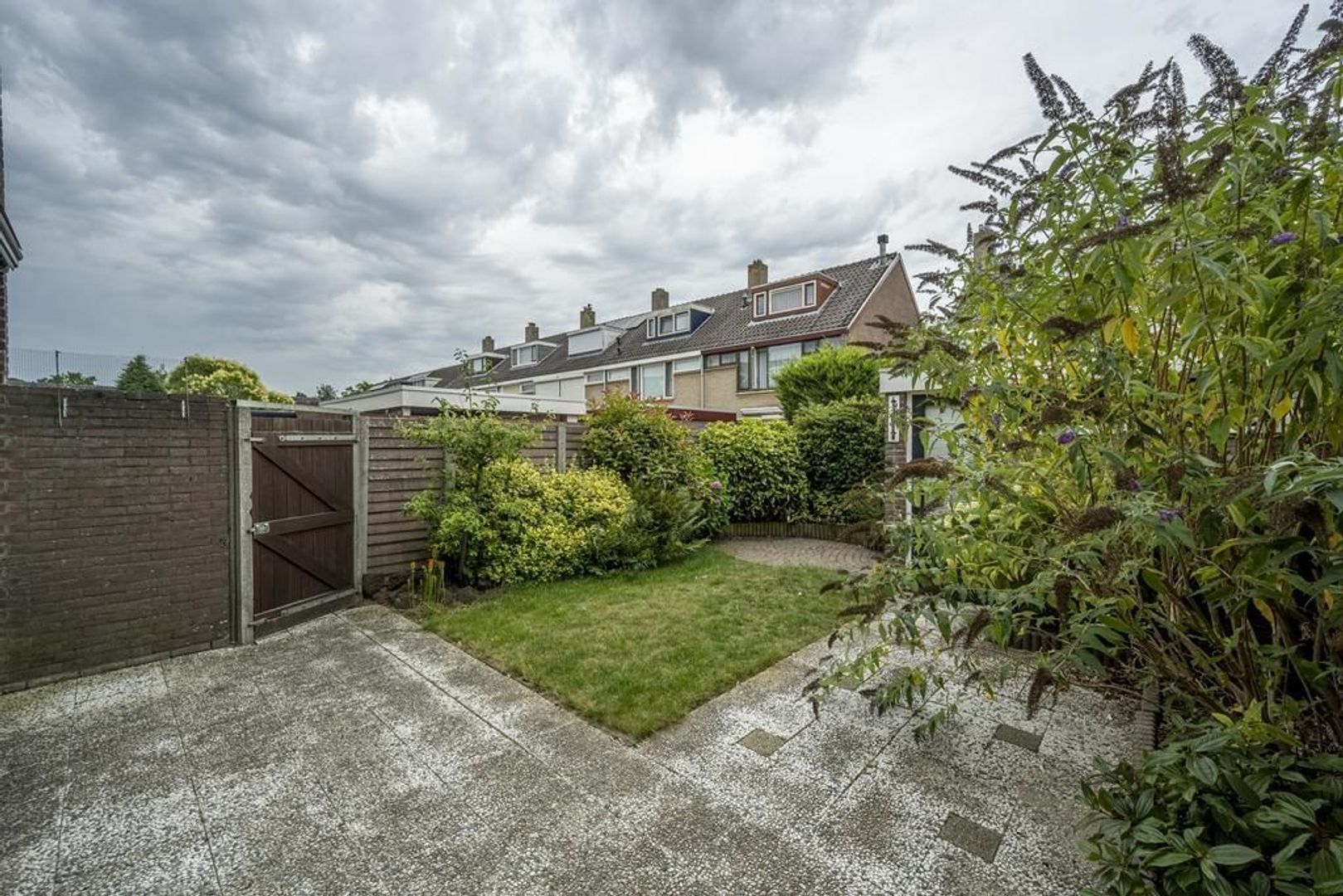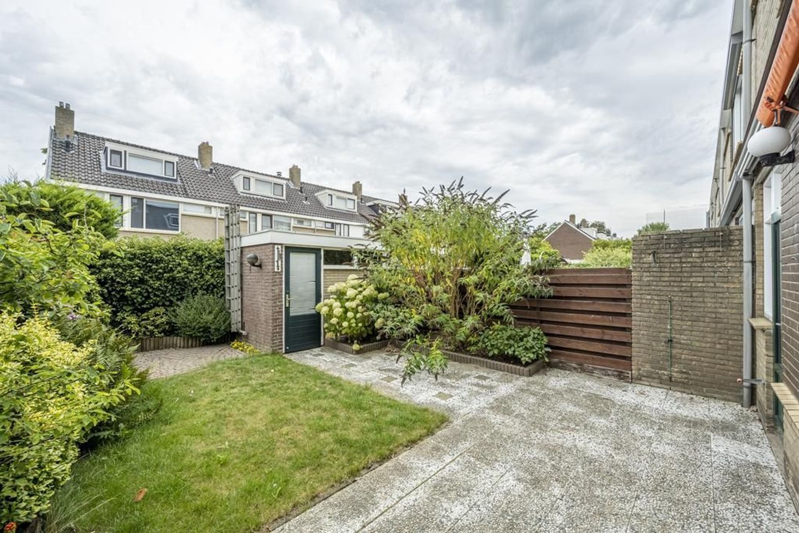 De achtertuin heeft een gunstige ligging op het westen. Hierin staat een stenen berging.