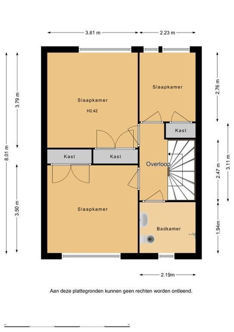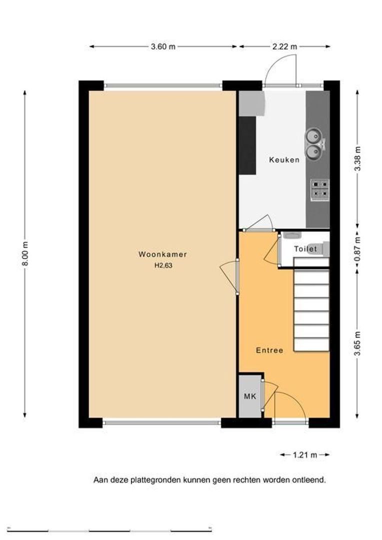 De indeling is als volgt: entree, ruime hal met voldoende ruimte voor een garderobe, meterkast, trapopgang en toiletruimte.