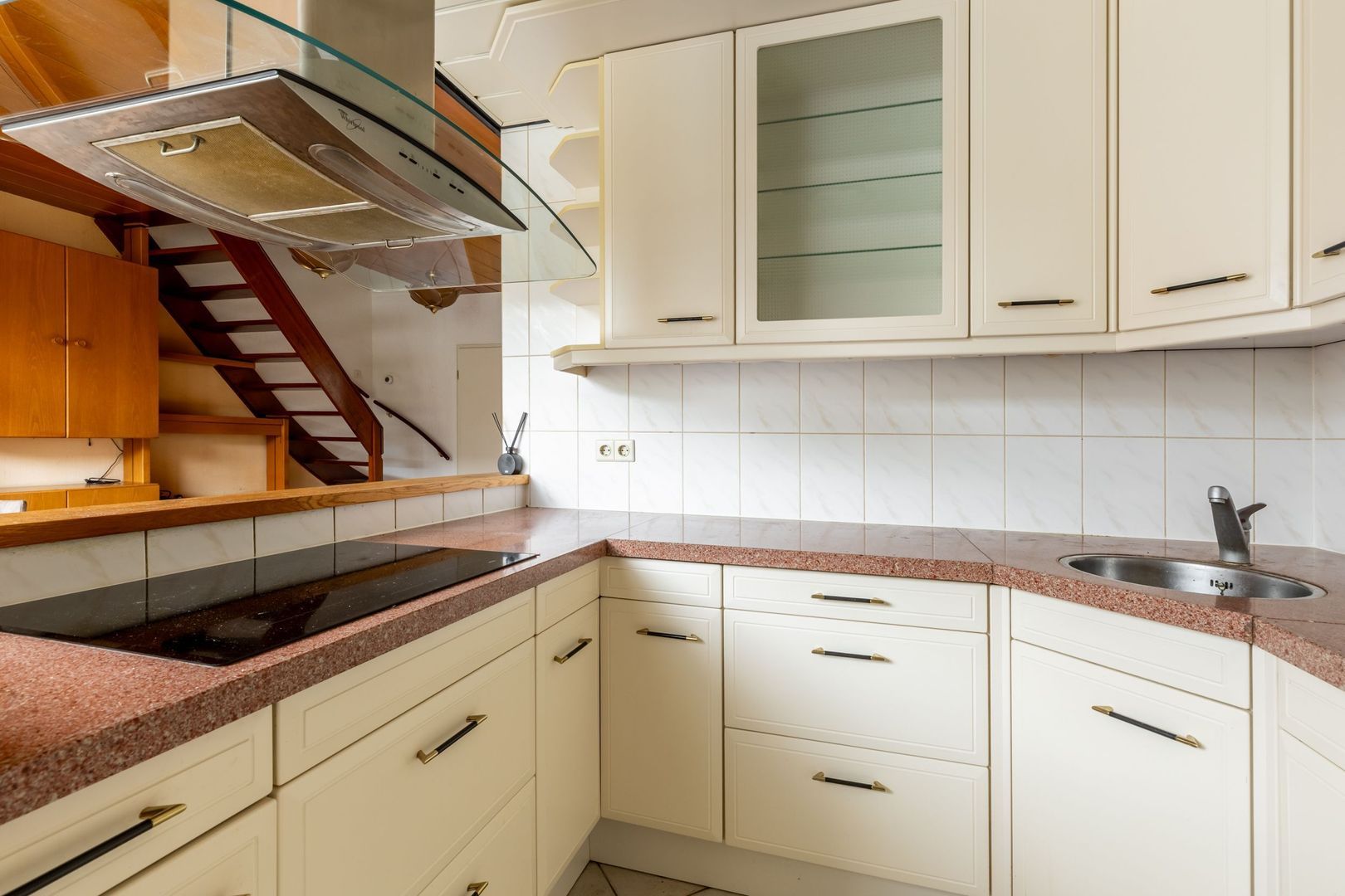 De keuken heeft een U-vormige inrichting met inbouwapparatuur.