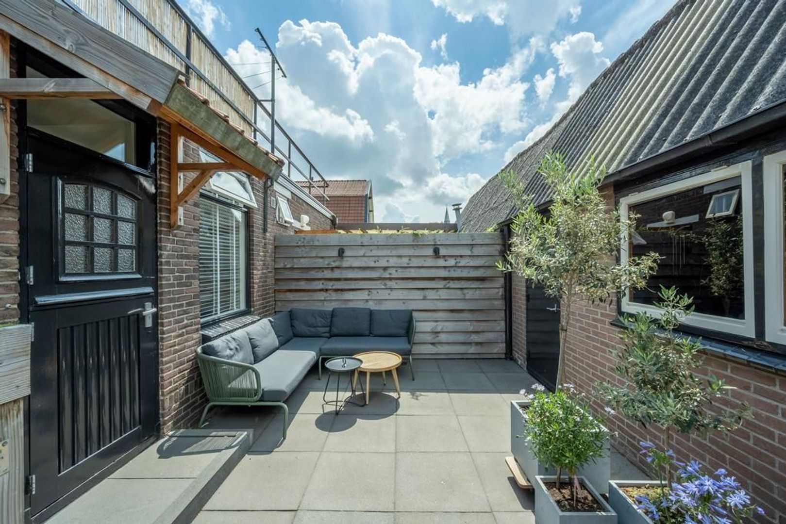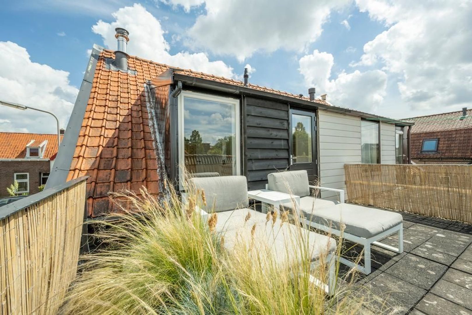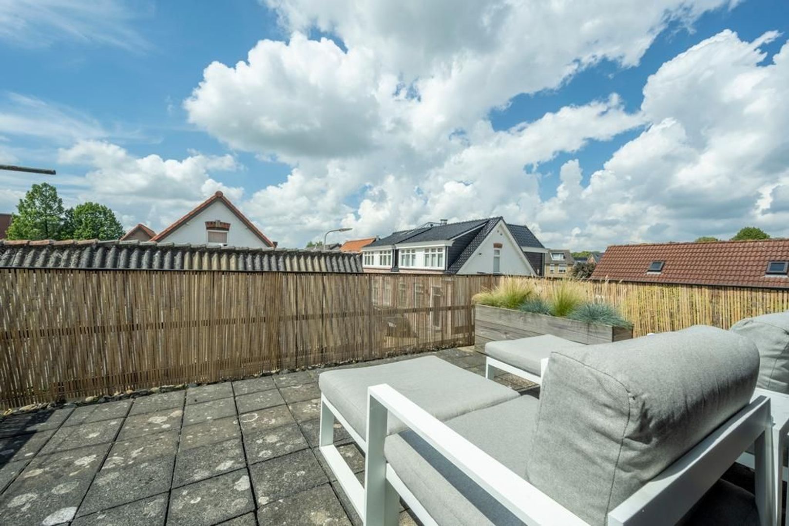 Vanuit de overloop is een heerlijk dakterras te bereiken. Deze ligt op het zonnige zuidwesten. Door middel van de bamboe afwerking is hier veel privacy en is het heerlijk toeven.