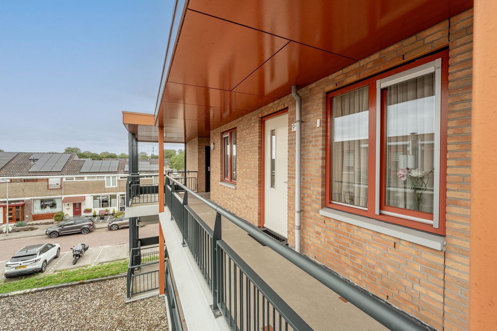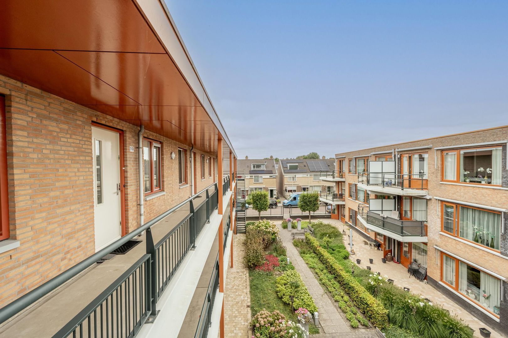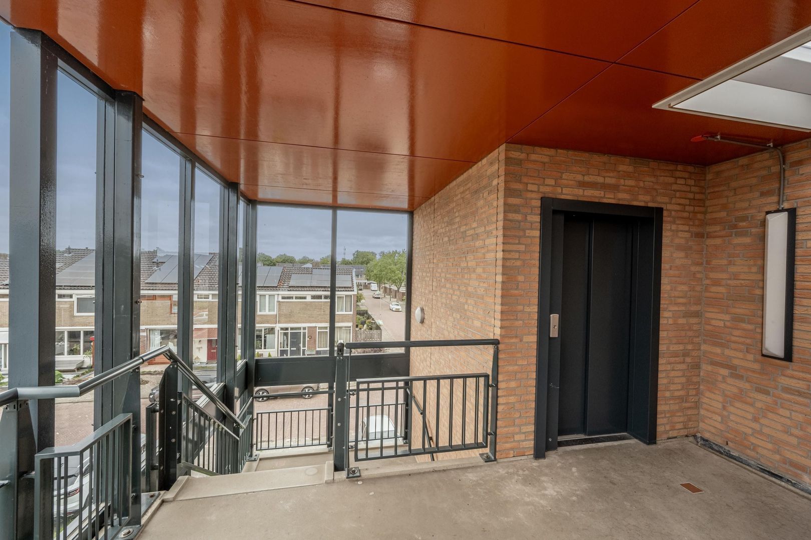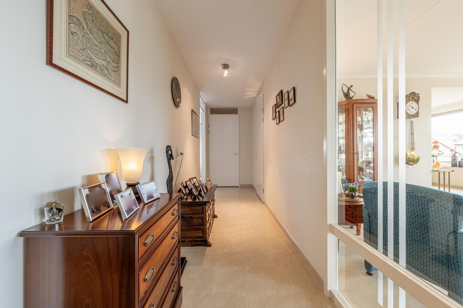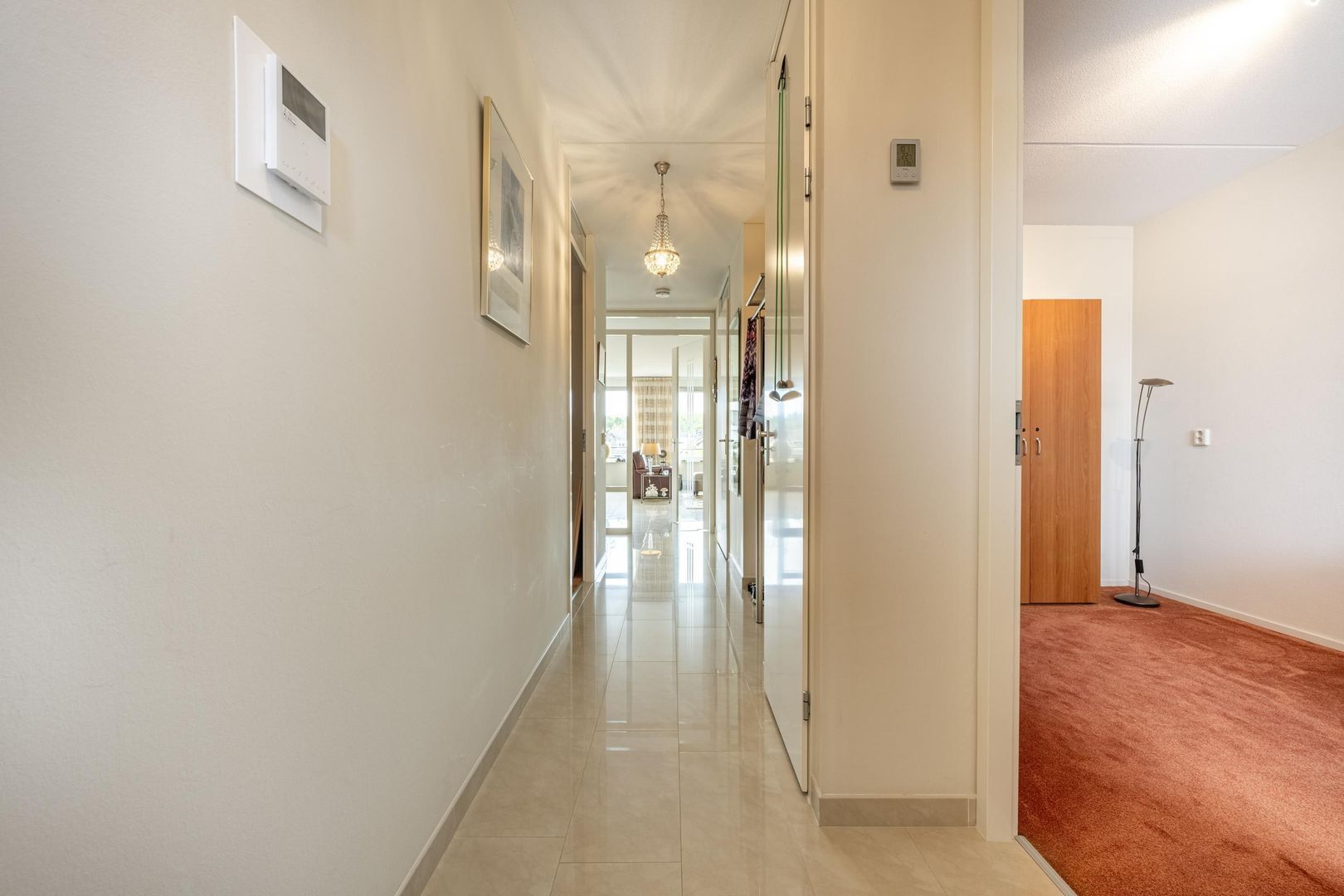 Via een overdekte gang wordt het gebouw aan de zuidkant bereikt. Het appartement ligt op de hoek en heeft de entree aan de galerij. De hal beidt toegang tot alle vertrekken in de woning, inclusief de drie slaapkamers.