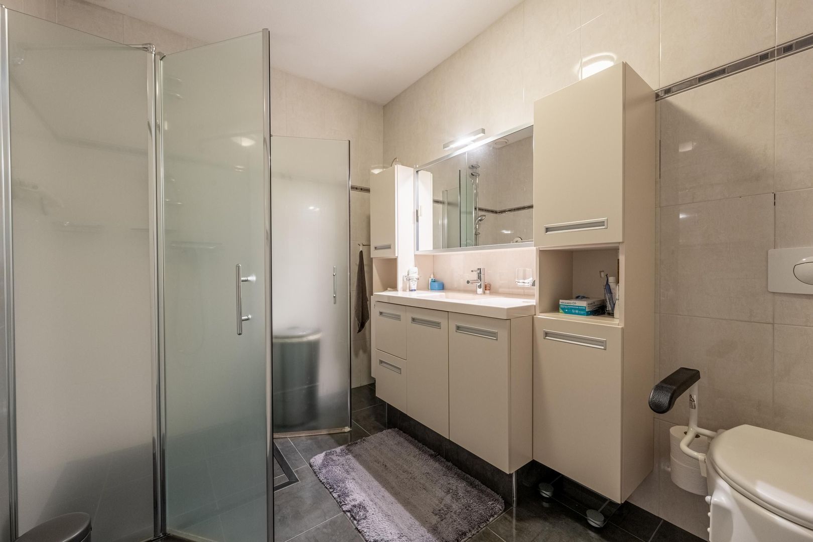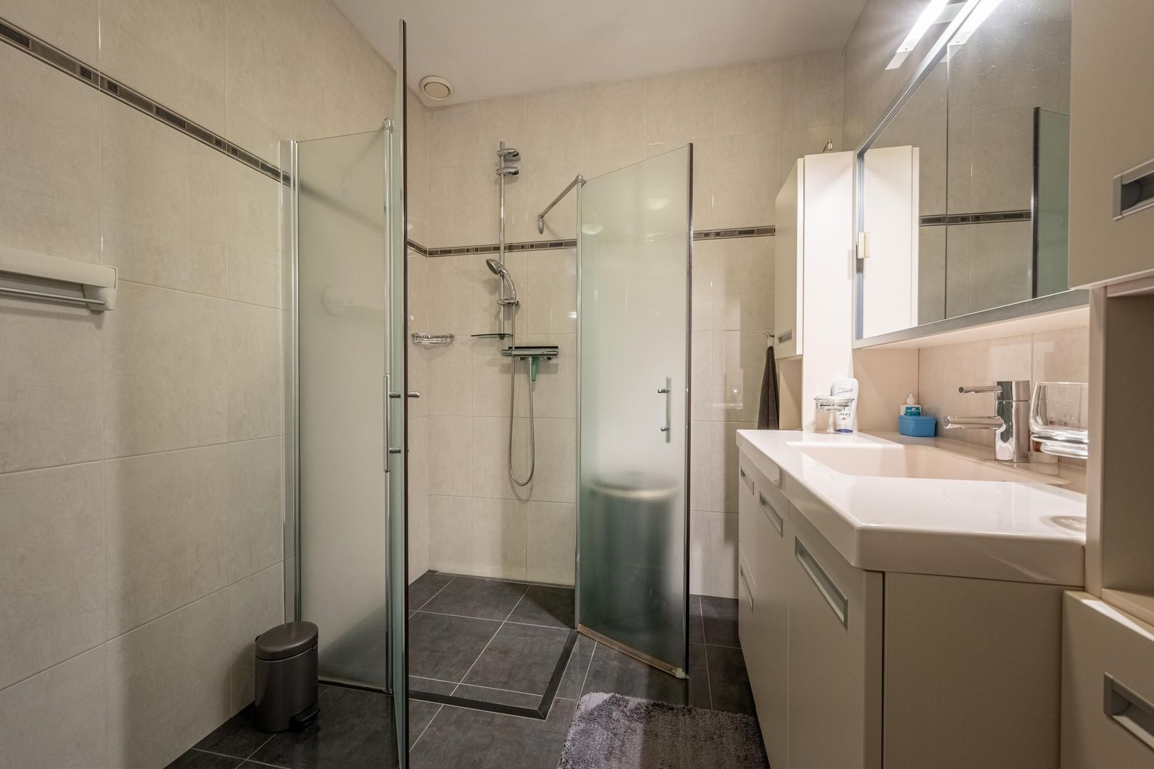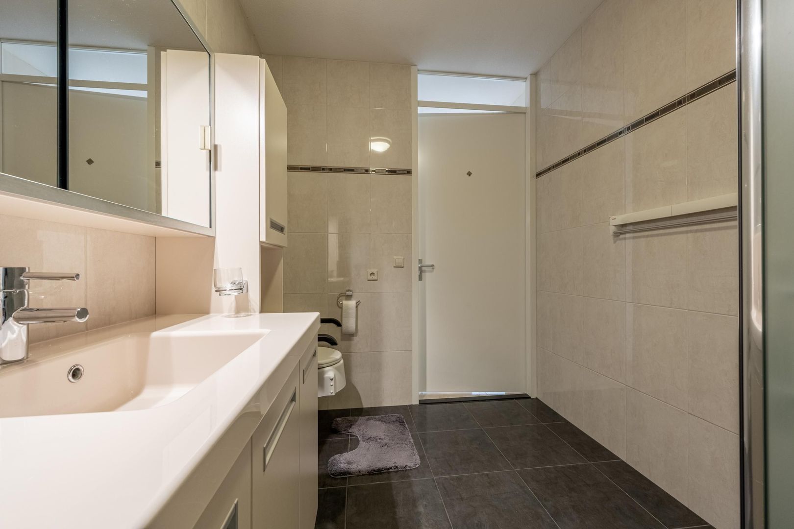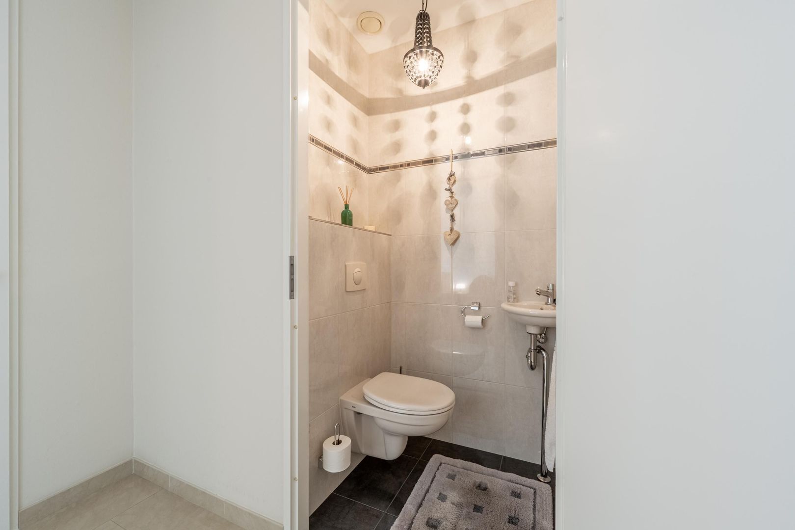 Tussenin liggen de badkamer met een doucheruimte, wastafelmeubel en toilet, een interne berging en een (gasten)toilet.