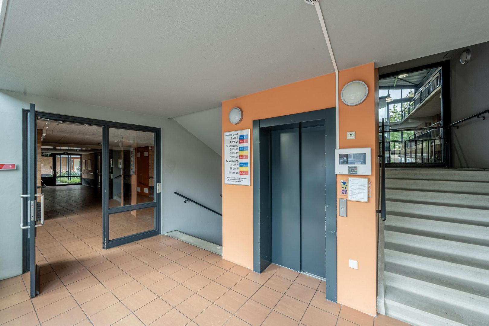 De hoofdingang ligt in het middelste gebouw. Hier zijn de lift, het trappenhuis en het videobeltableau.