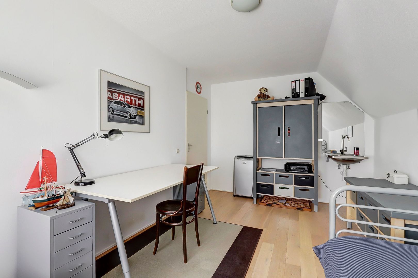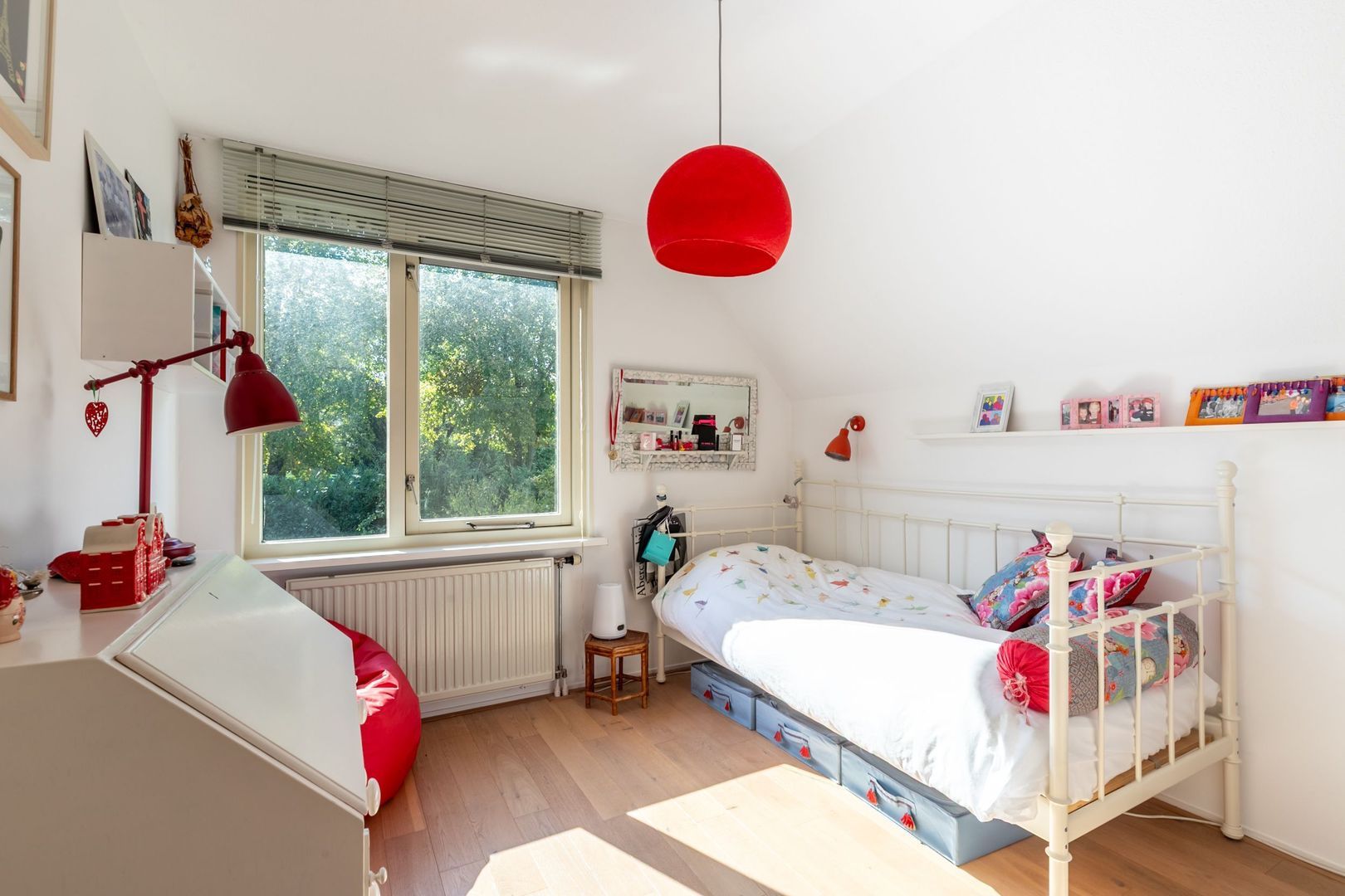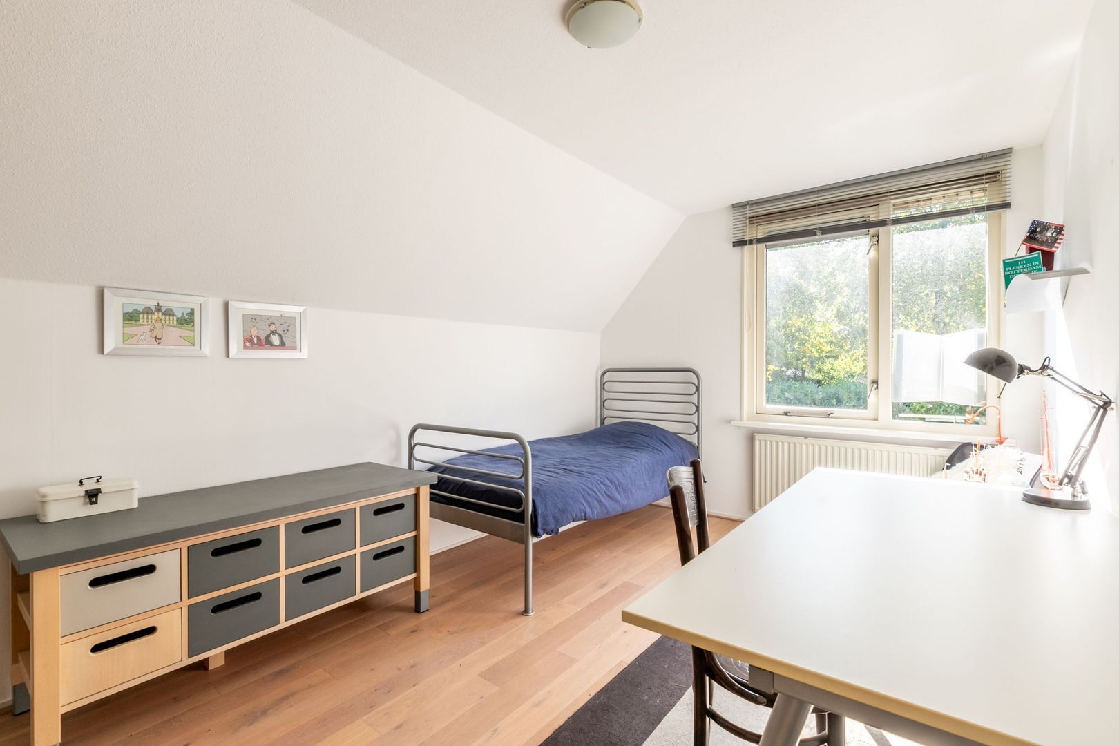 De zolderverdieping is bereikbaar met een schuiftrap. Hier is verrassend veel bergruimte.