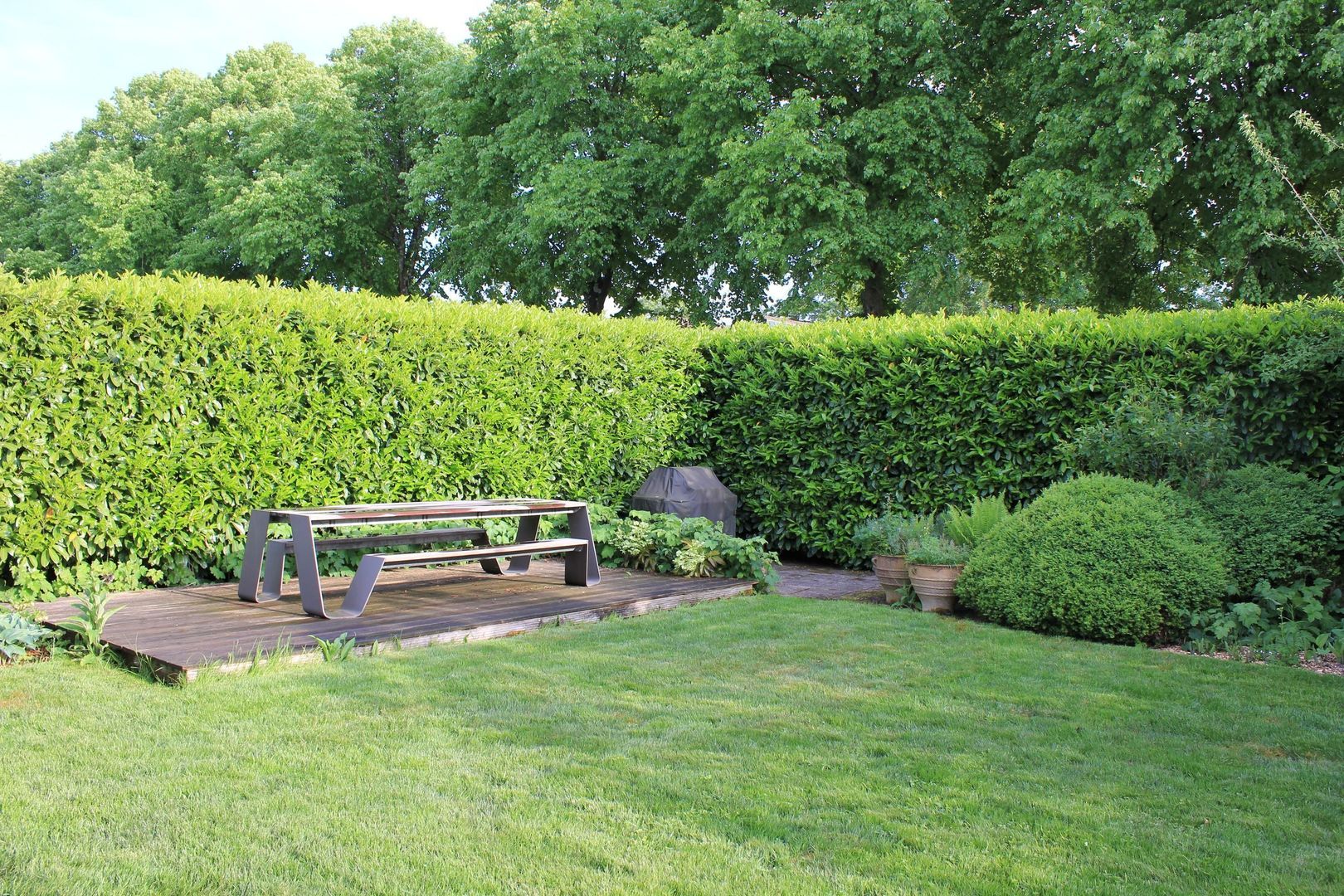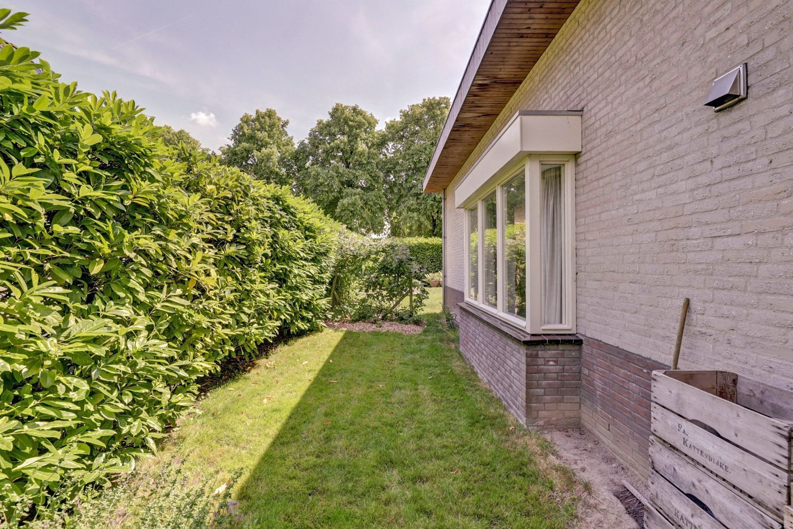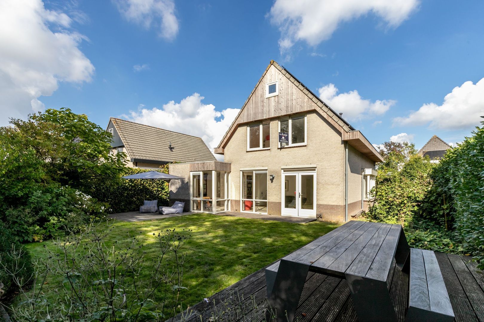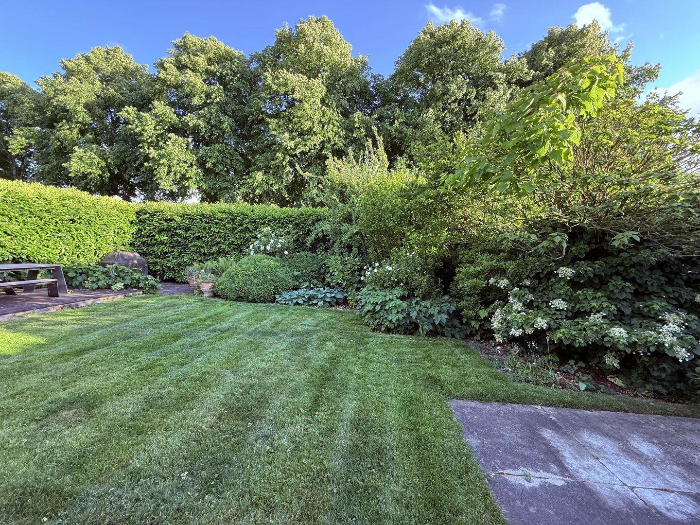 De tuin is ruim en biedt veel privacy, mede vanwege de volwassen beplanting.