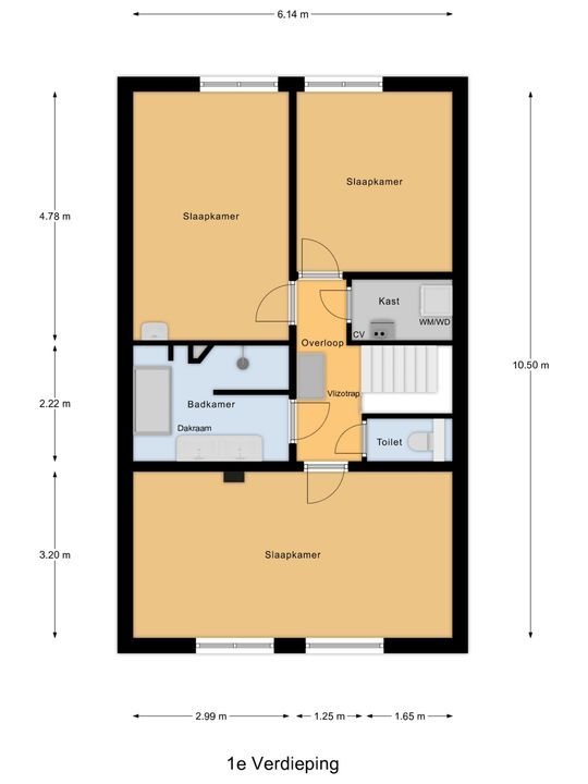 Op de eerste verdieping zijn drie slaapkamers, een aparte toiletruimte, een moderne badkamer en een wasruimte.