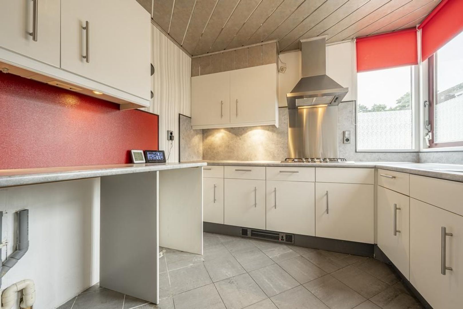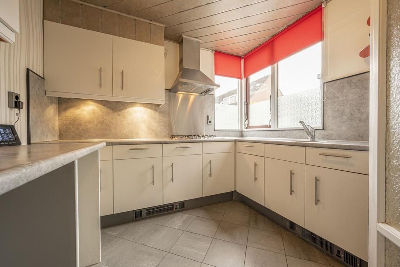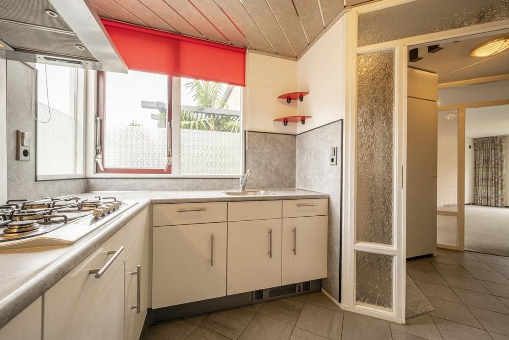 Kenmerkend is de indeling op de begane grond. De keuken is in het aangebouwde gedeelte aan de voorkant gesitueerd, waardoor de woonkamer verrassend groot is.