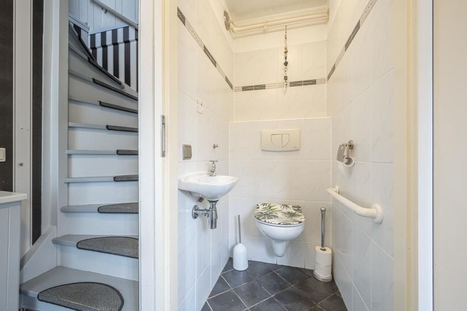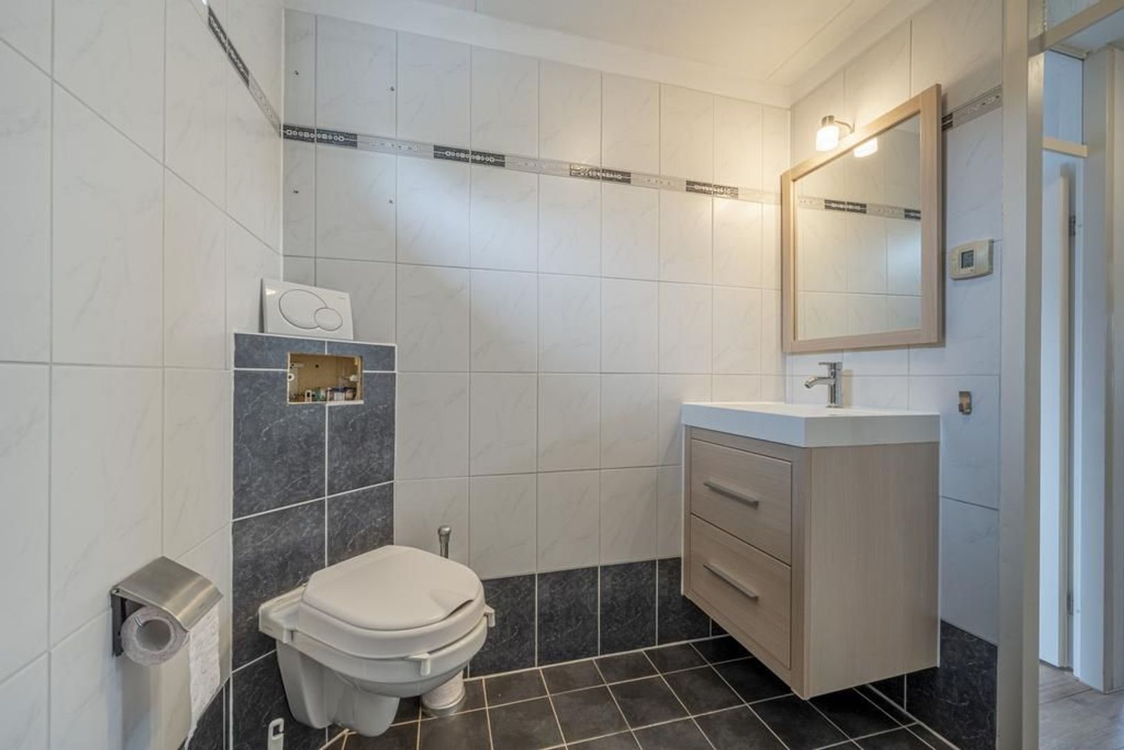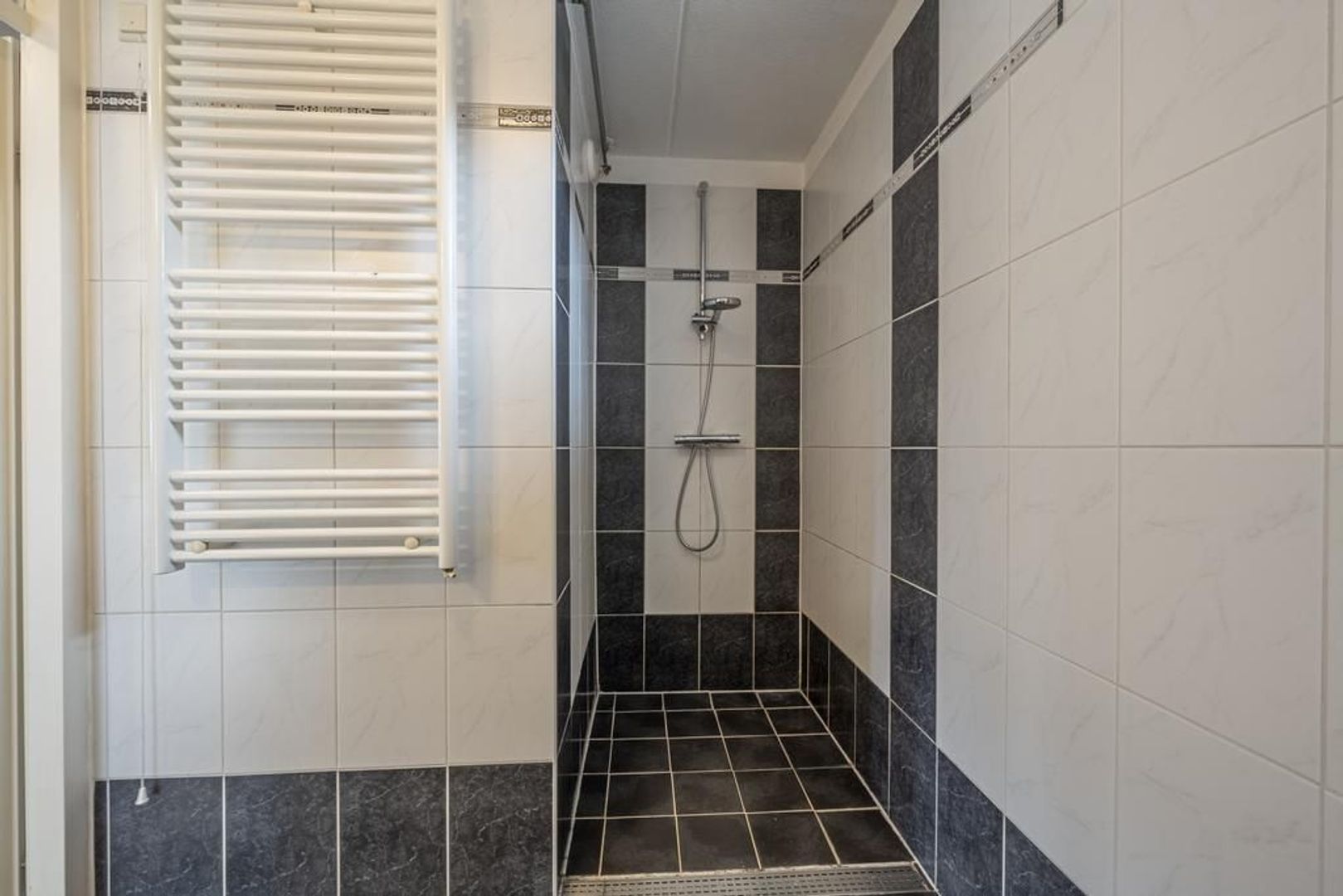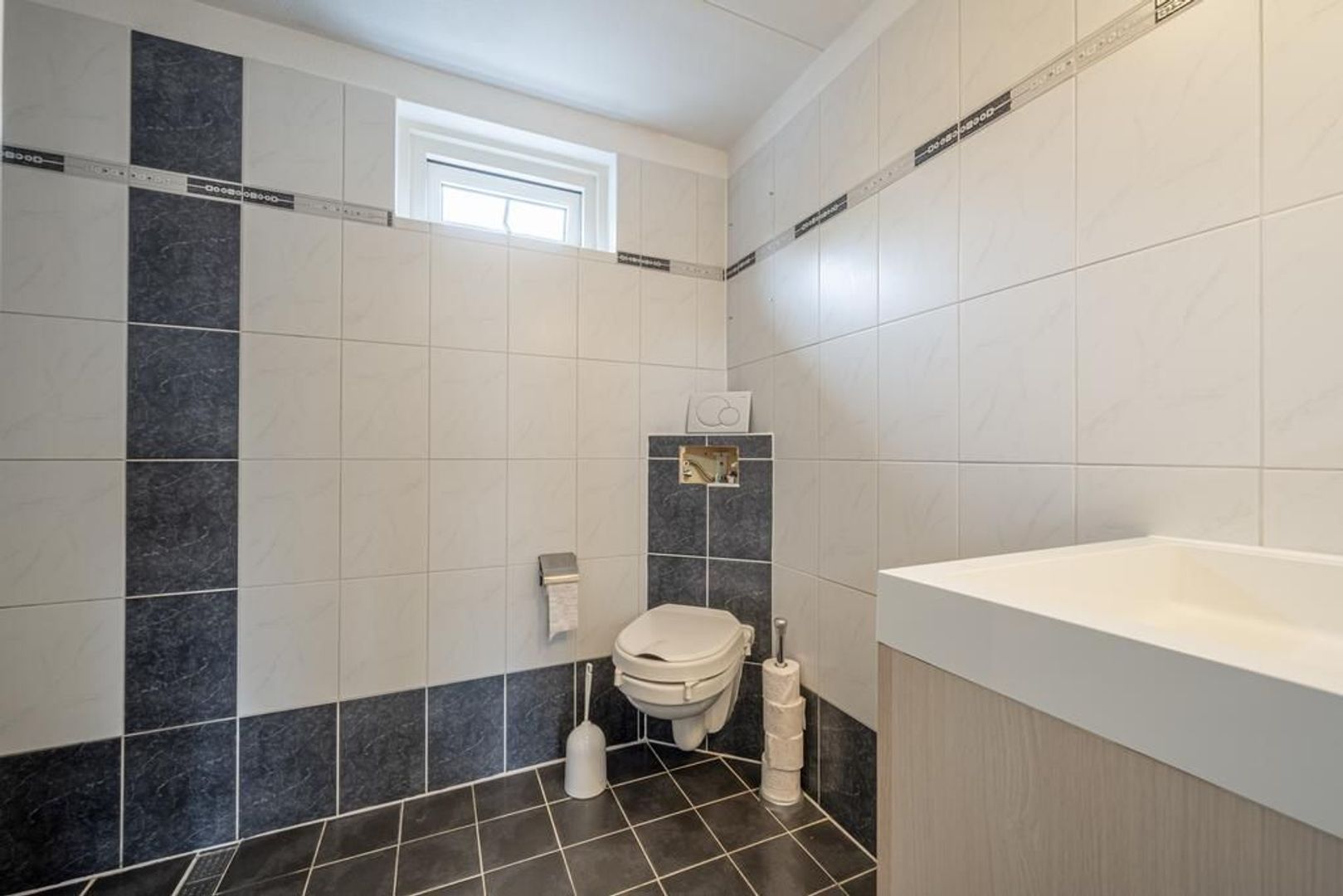 De badkamer biedt ruimte aan een inloopdouche, een tweede toilet en een wastafelmeubel. Het raam maakt ventileren met frisse buitenlucht mogelijk.