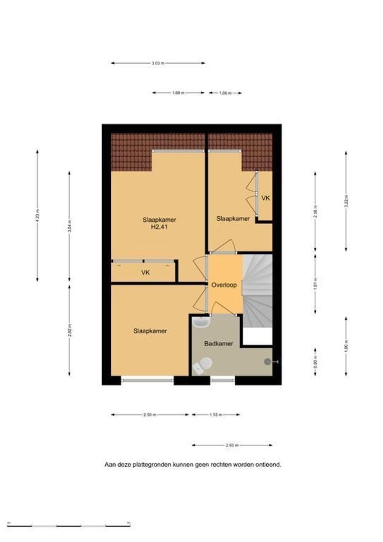 Op de eerste verdieping zijn drie slaapkamers, waarvan twee met vaste kasten.