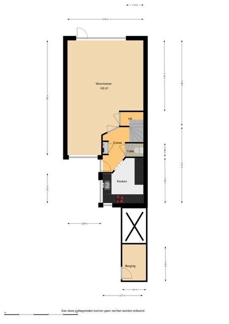 De indeling is als volgt: entree, hal met meterkast, toiletruimte en trapopgang. Keuken met L-vormige inrichting, voorzien van 5-pits gaskookplaat, afzuigkap en aansluiting ten behoeve van de wasmachine.