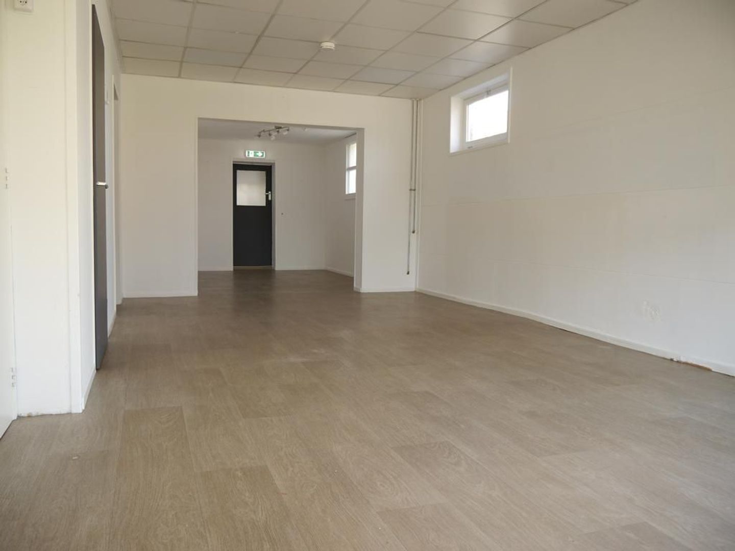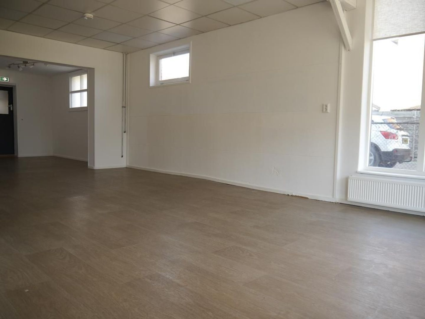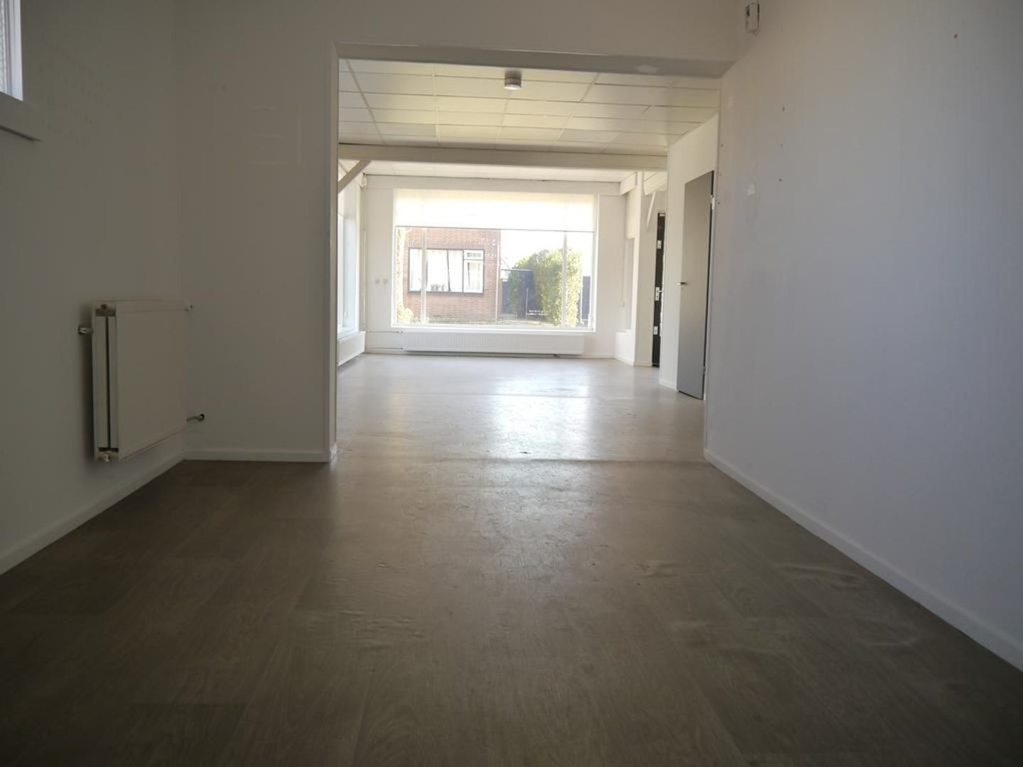 De winkel/bedrijfsruimte is in totaal ongeveer 105 m² groot. De indeling is globaal als volgt: entree, grote open ruimte met aparte meterkast, kitchenette met toiletruimte, vaste kast met keukenblok, inpandige berging (kamer zonder daglicht), achterhal met deur naar buiten, twee aparte ruimtes met raam.
