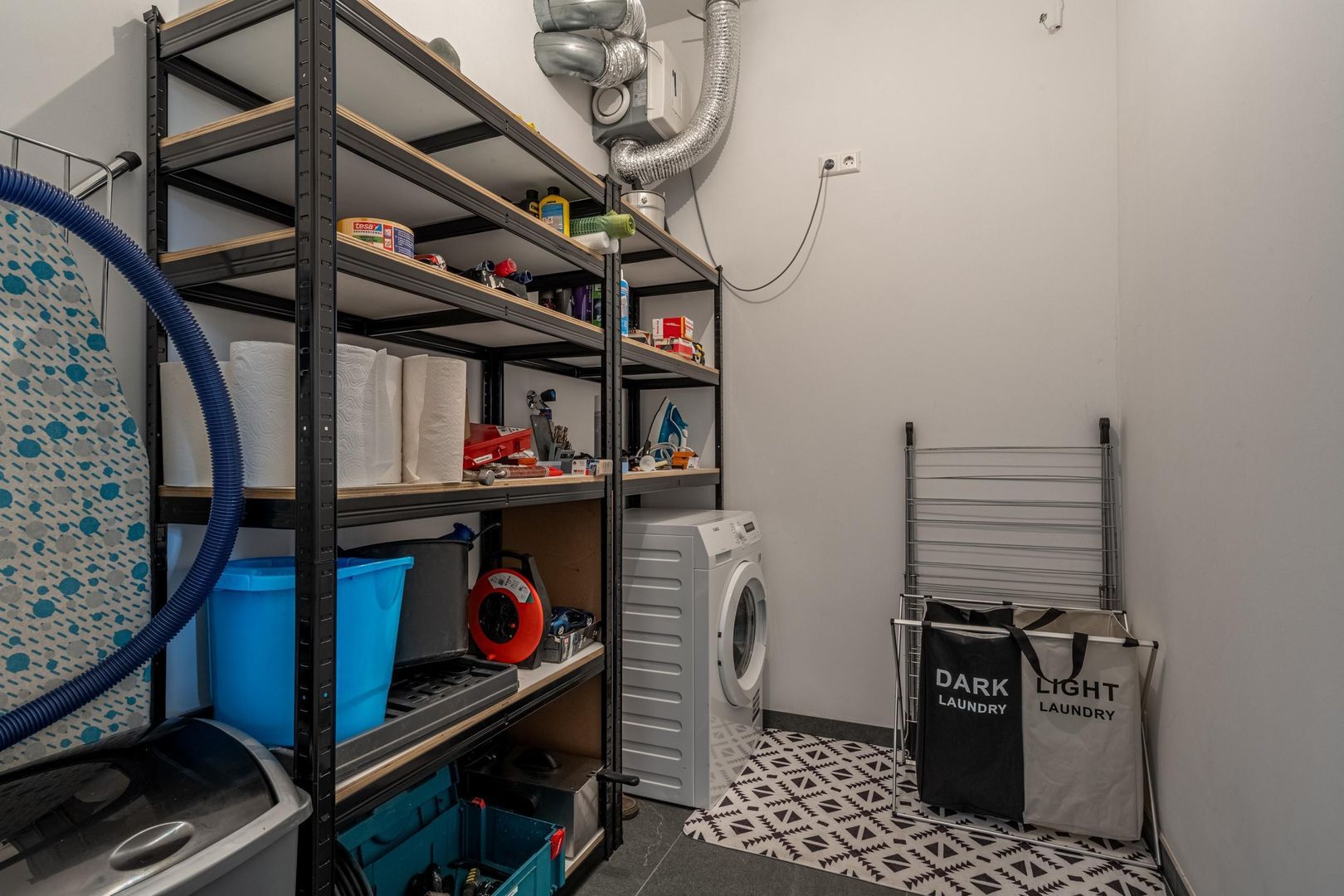 Bijzonder praktisch is de inpandige berging, waarin ruimte is voor de wasmachine, opslag en de mechanische ventilatie. Buiten is er ook nog een (fietsen-)berging aanwezig.