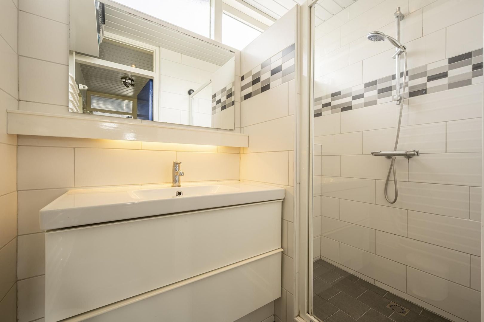 Op de eerste verdieping zijn drie slaapkamers en de badkamer. Deze is uitgevoerd met een inloopdouche, wastafelmeubel en een designradiator.