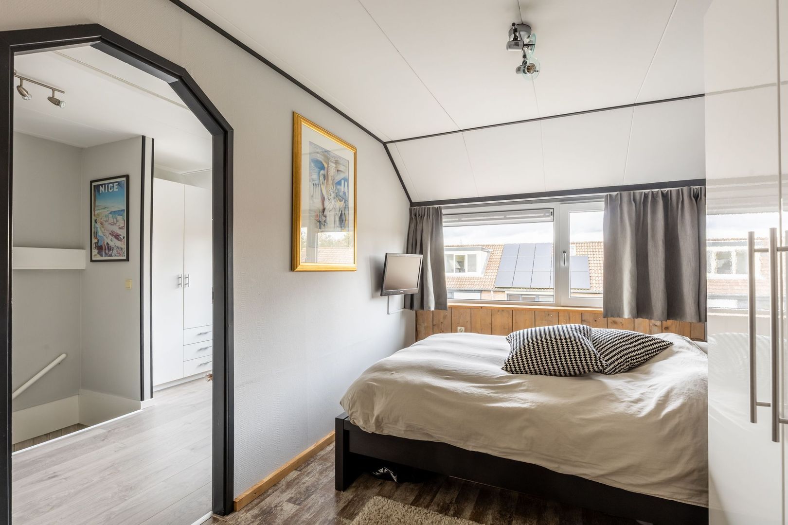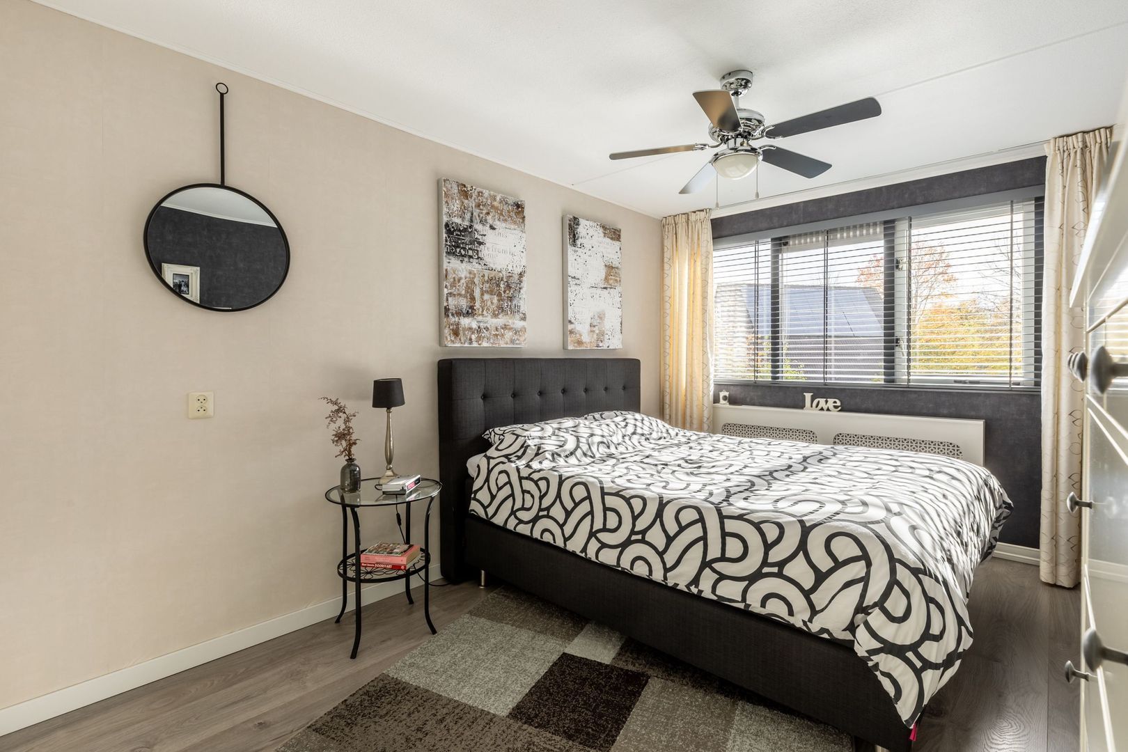 De vloeren zijn afgewerkt met laminaat.