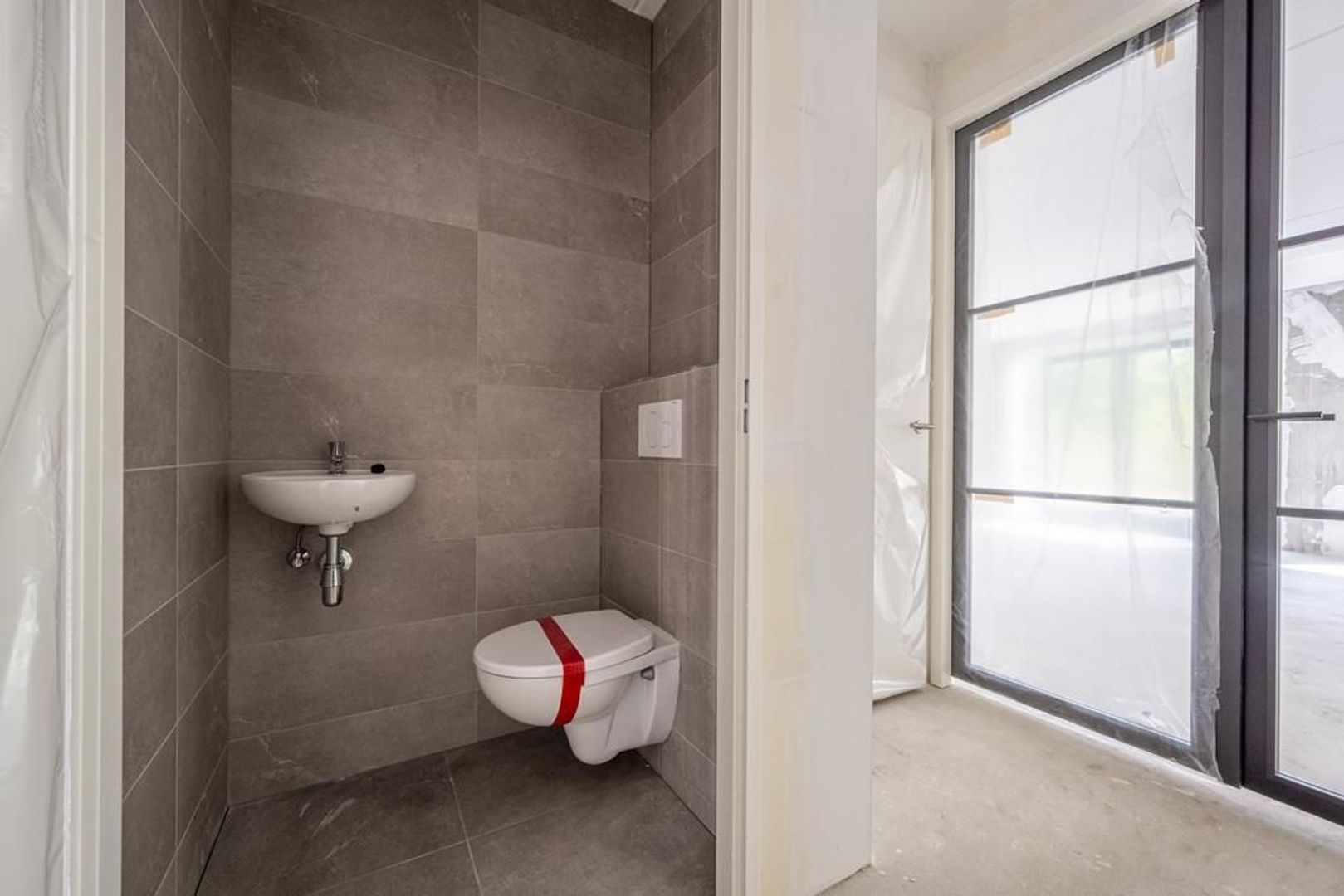 De toiletten en badkamer zijn ingericht en afgewerkt met eigentijds sanitair en tegelwerk.