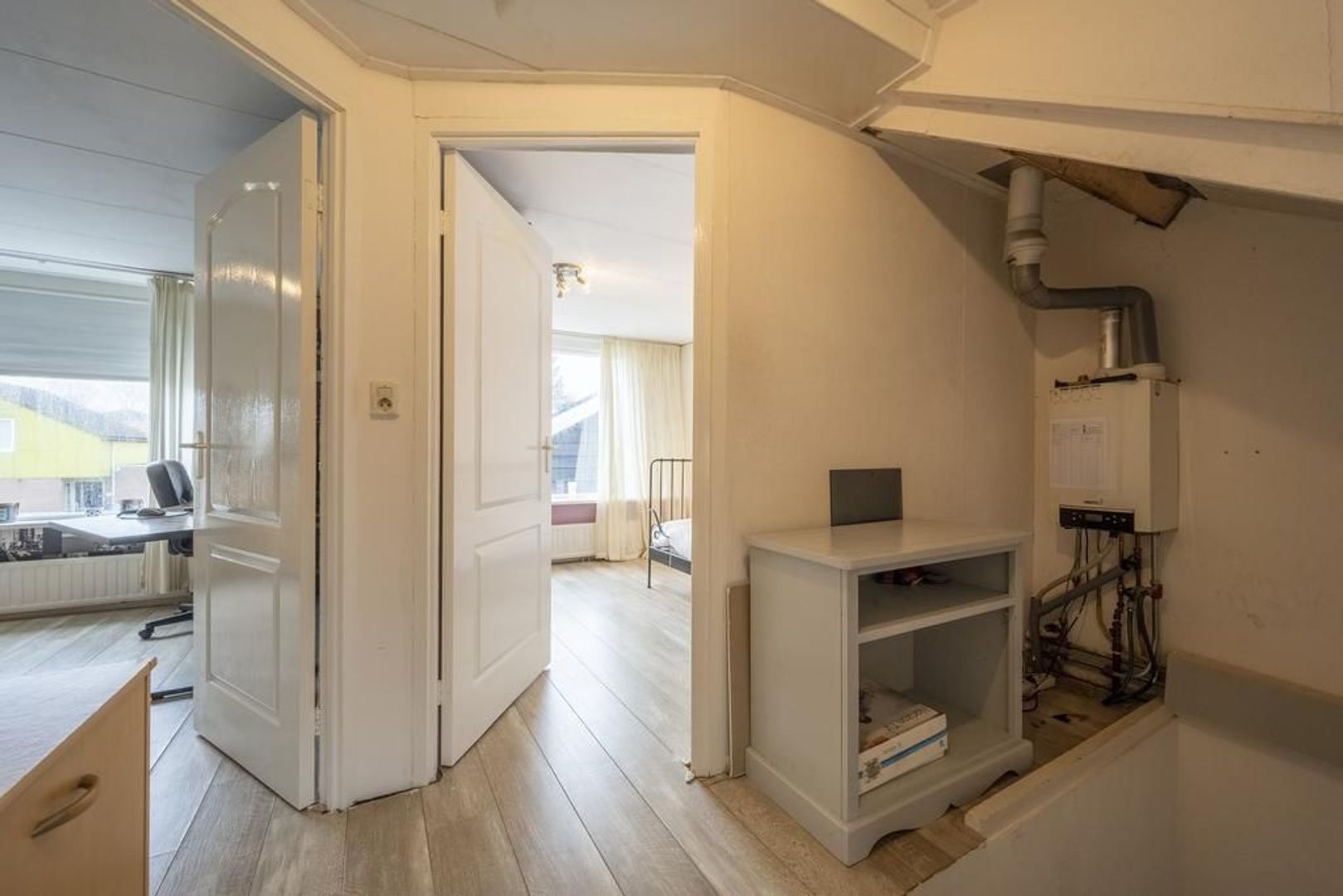 Op de eerste verdieping zijn drie slaapkamers. Deze zijn afgewerkt met een laminaatvloer.
