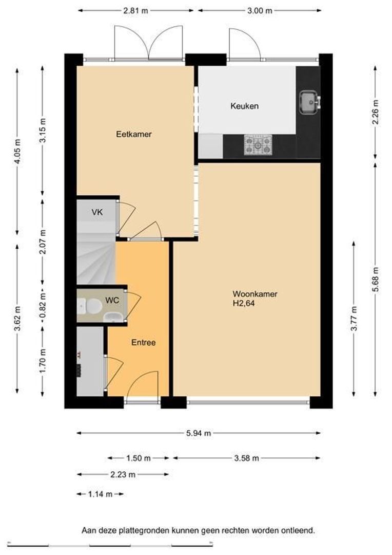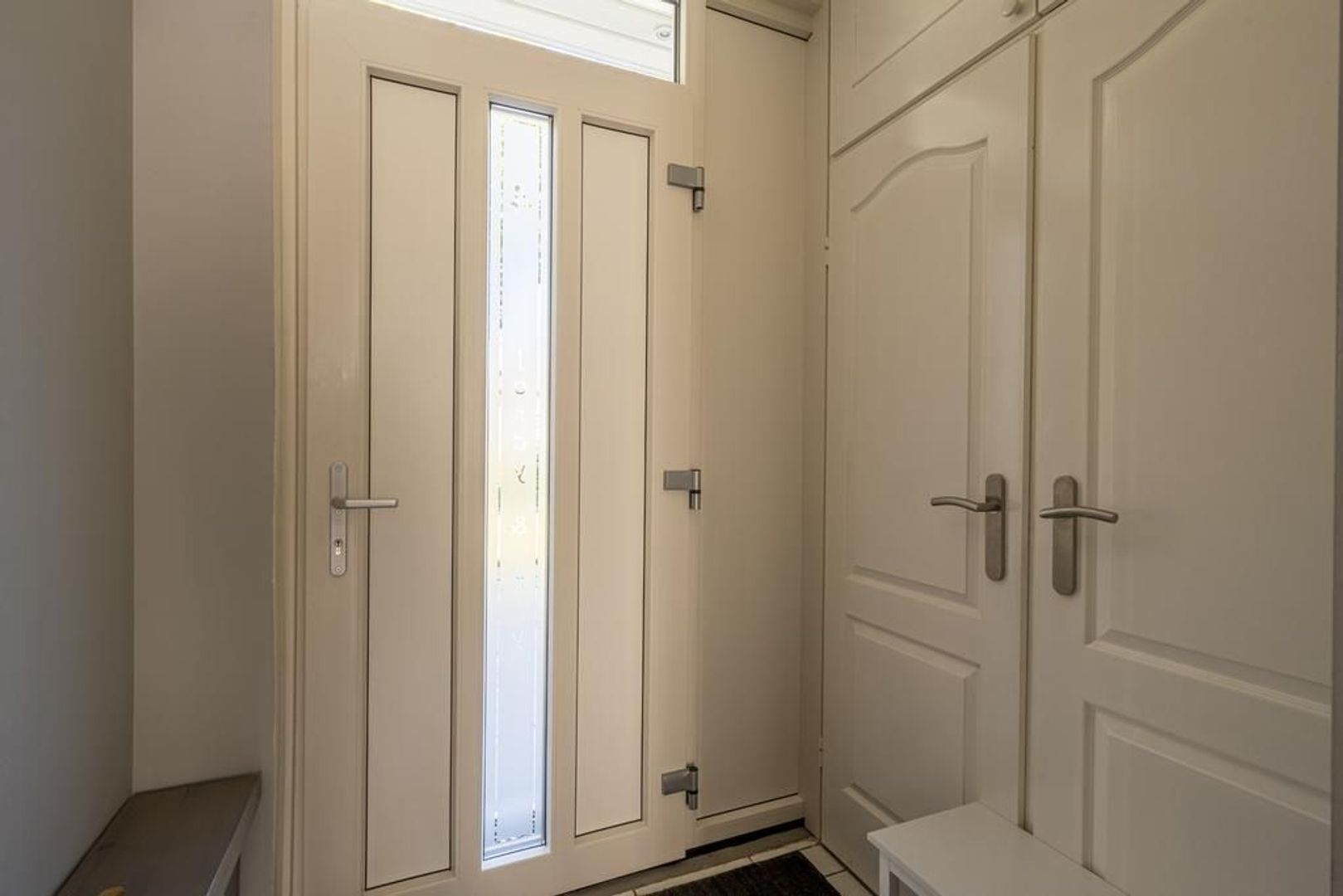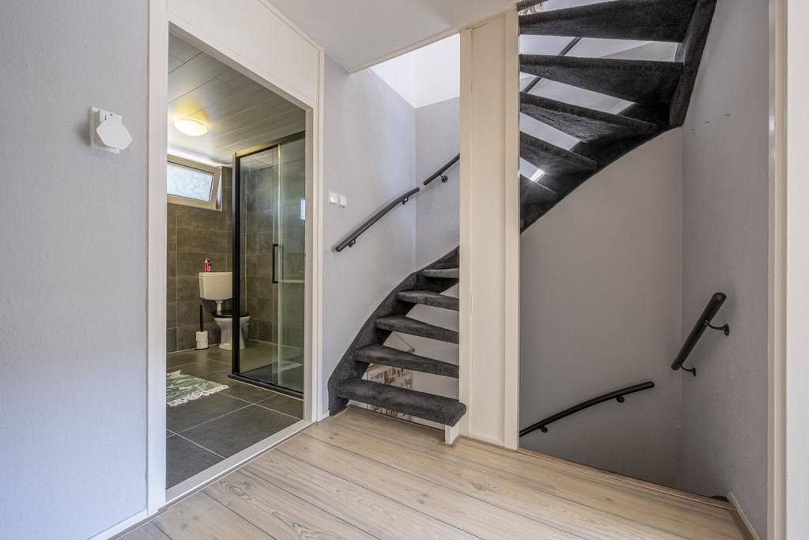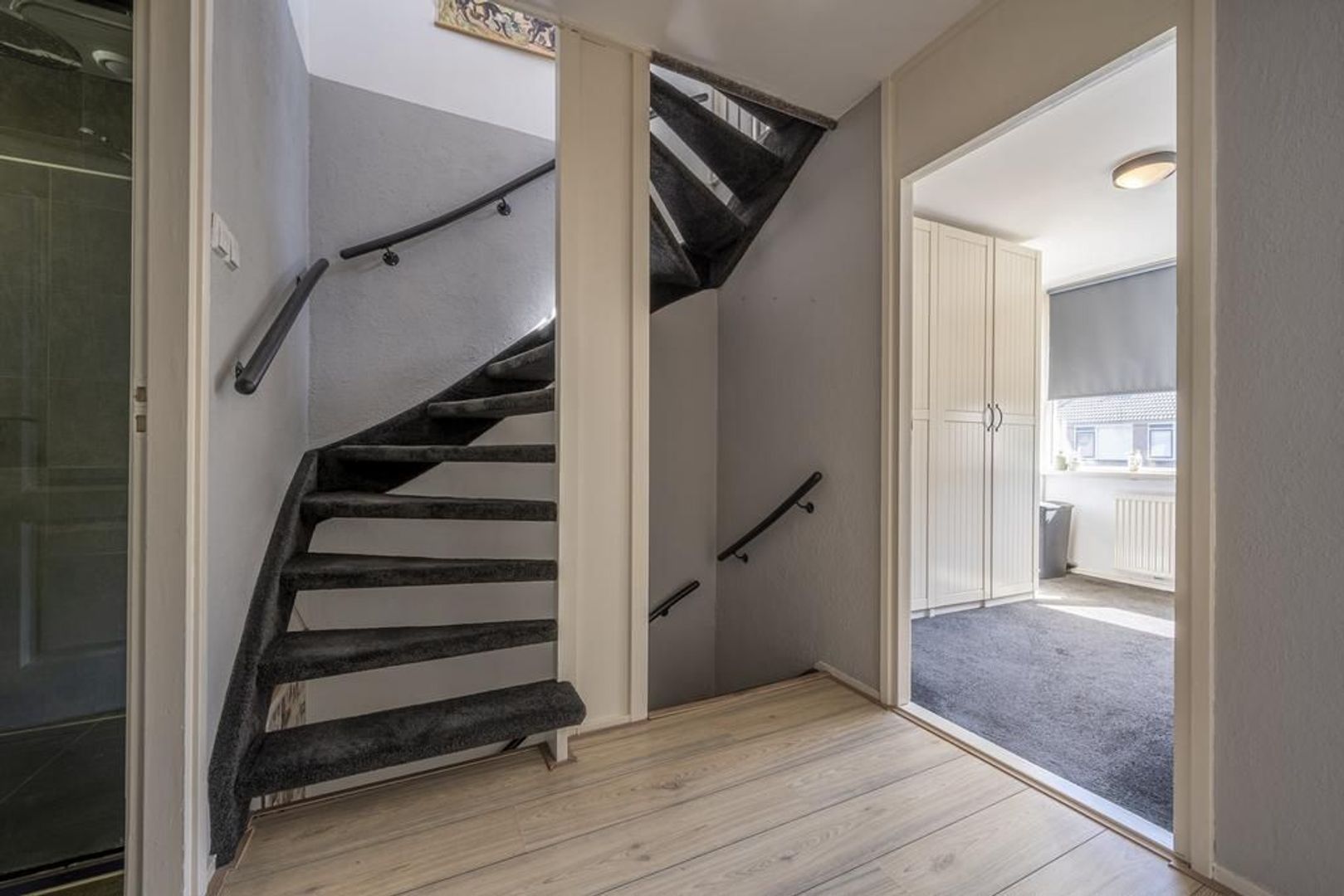 De indeling is als volgt: entree, hal met meterkast, vaste kast, trapopgang en toiletruimte met wandcloset.