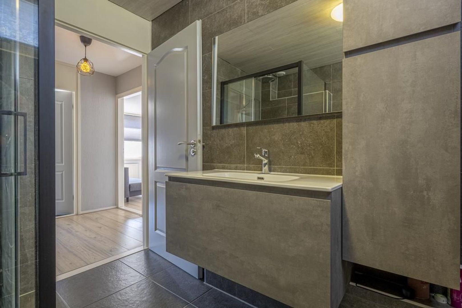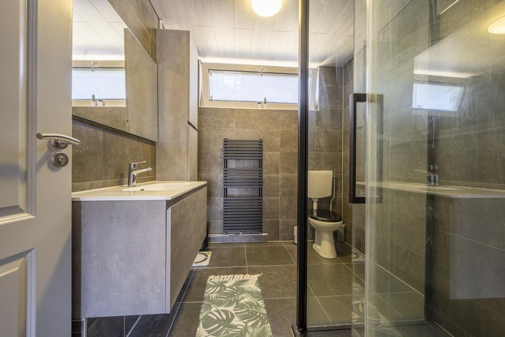 Op de eerste verdieping zijn drie slaapkamers en een stoere badkamer. Deze is ingericht met een douchegelegenheid, wastafelmeubel en tweede toilet. Het raam maakt ventileren met frisse buitenlucht mogelijk.