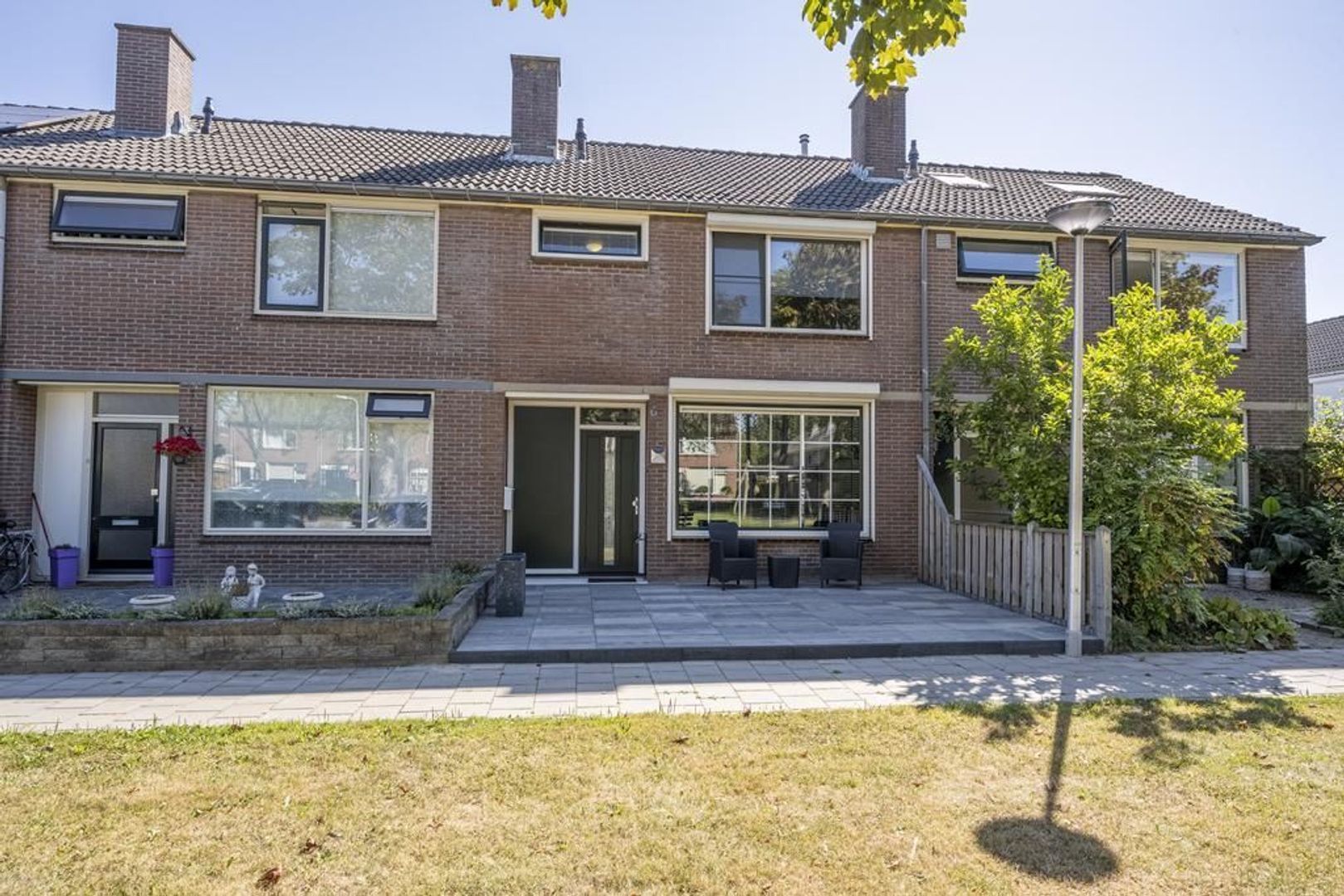 De voortuin is recent opnieuw aangelegd.