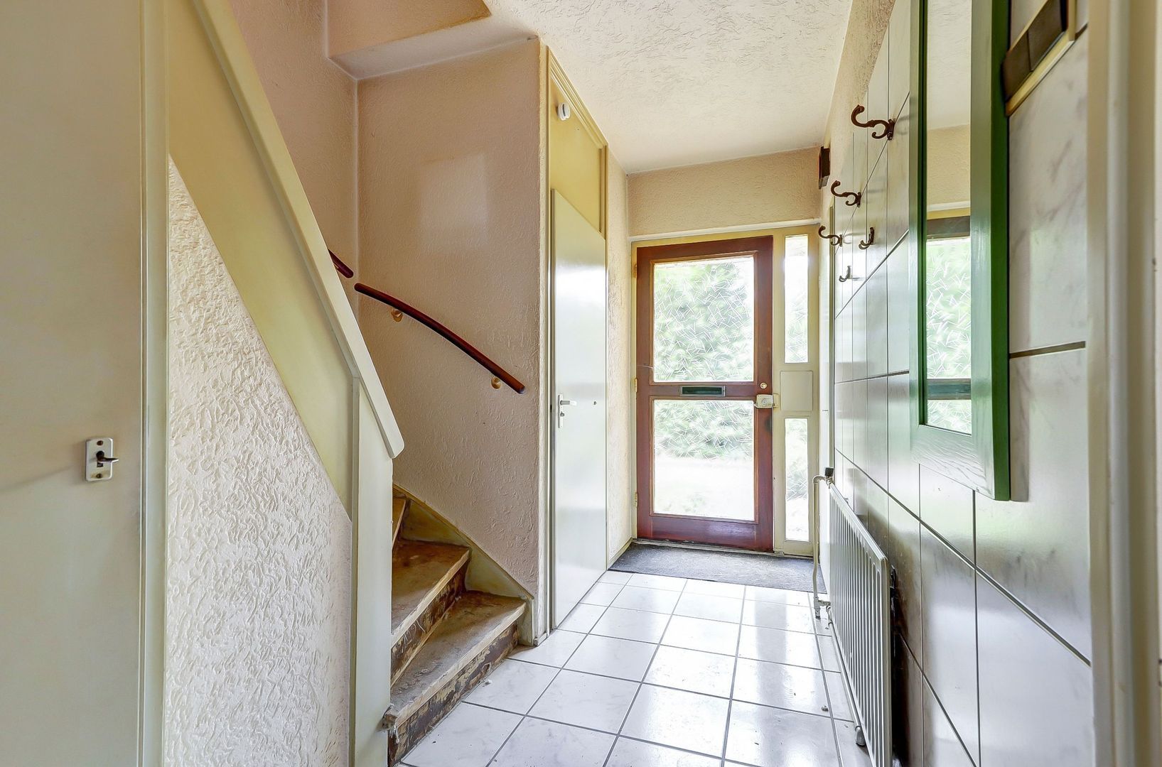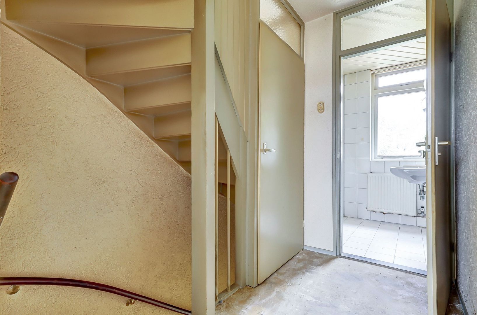 De indeling is als volgt: entree, hal met meterkast, toiletruimte en trapopgang.