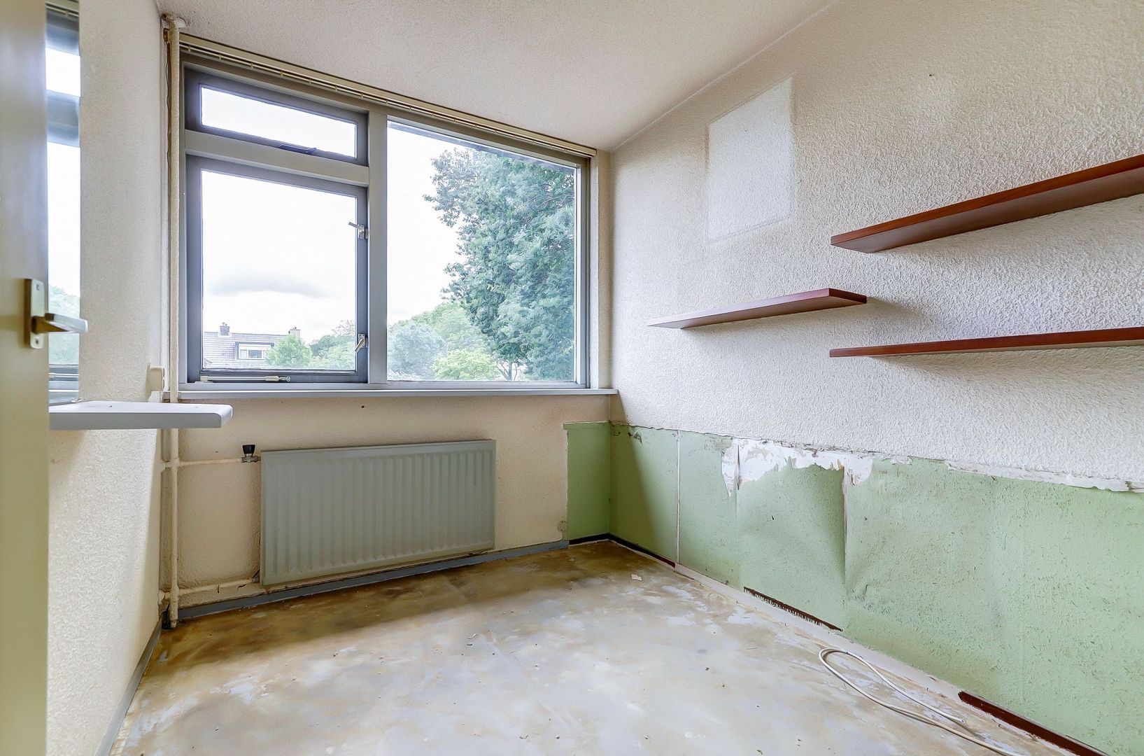 De derde slaapkamer is ruim en voorzien van een tuimelraam en bergruimte.
