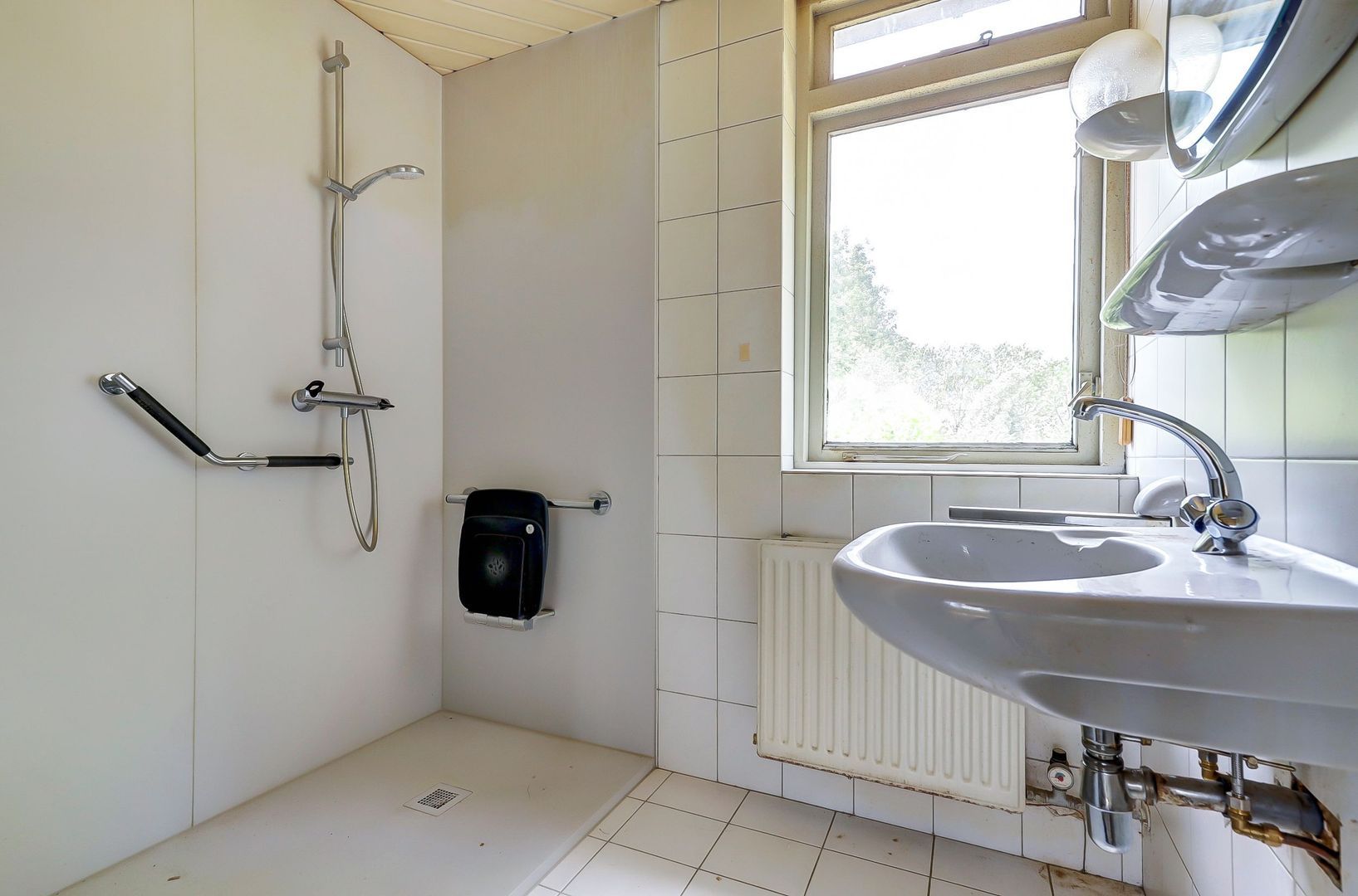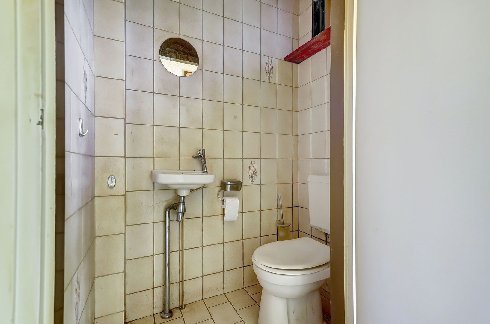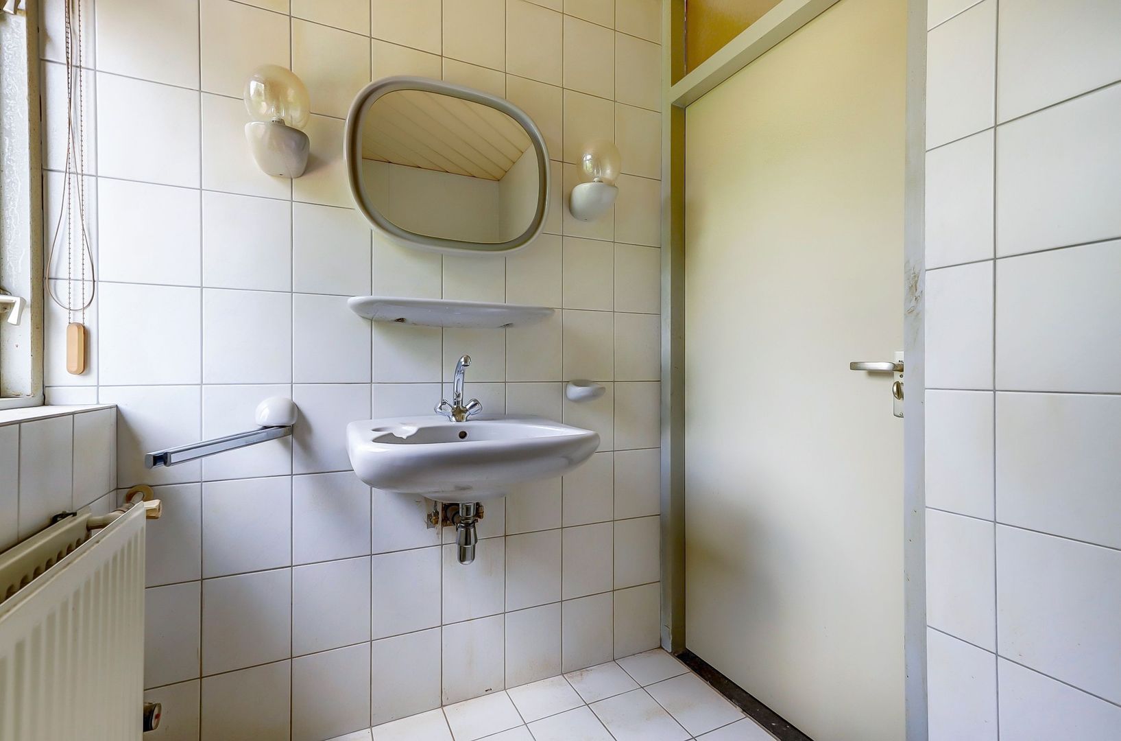 Op de eerste verdieping zijn twee slaapkamers (voorheen drie) en de badkamer. Deze is ingericht met een douchegelegenheid en een wastafel. Het raam maakt ventileren met frisse buitenlucht mogelijk.