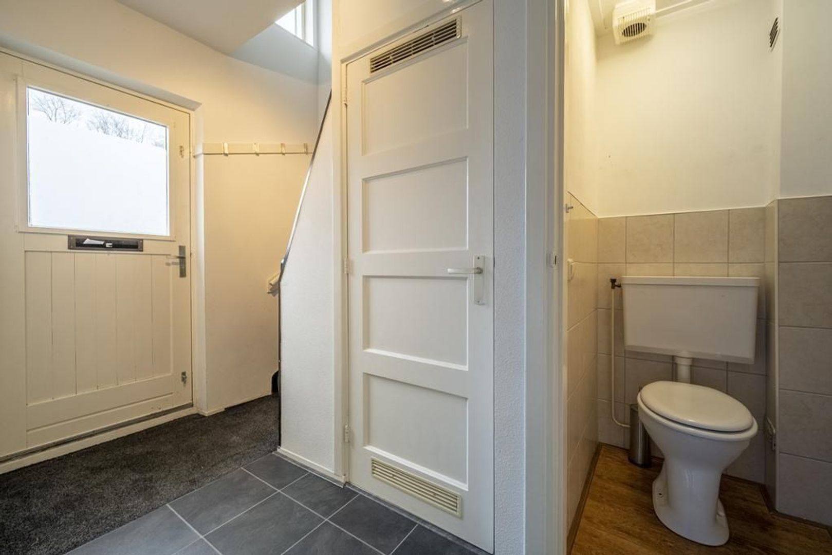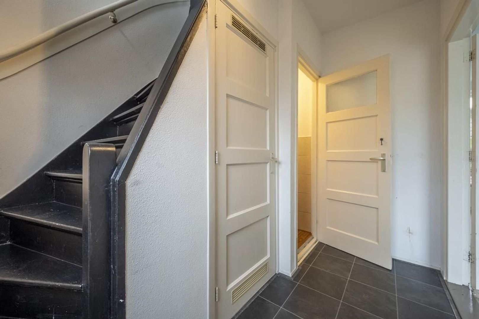De indeling is globaal als volgt: entree in hal, trapopgang, trapkast met de meterkast, toiletruimte.