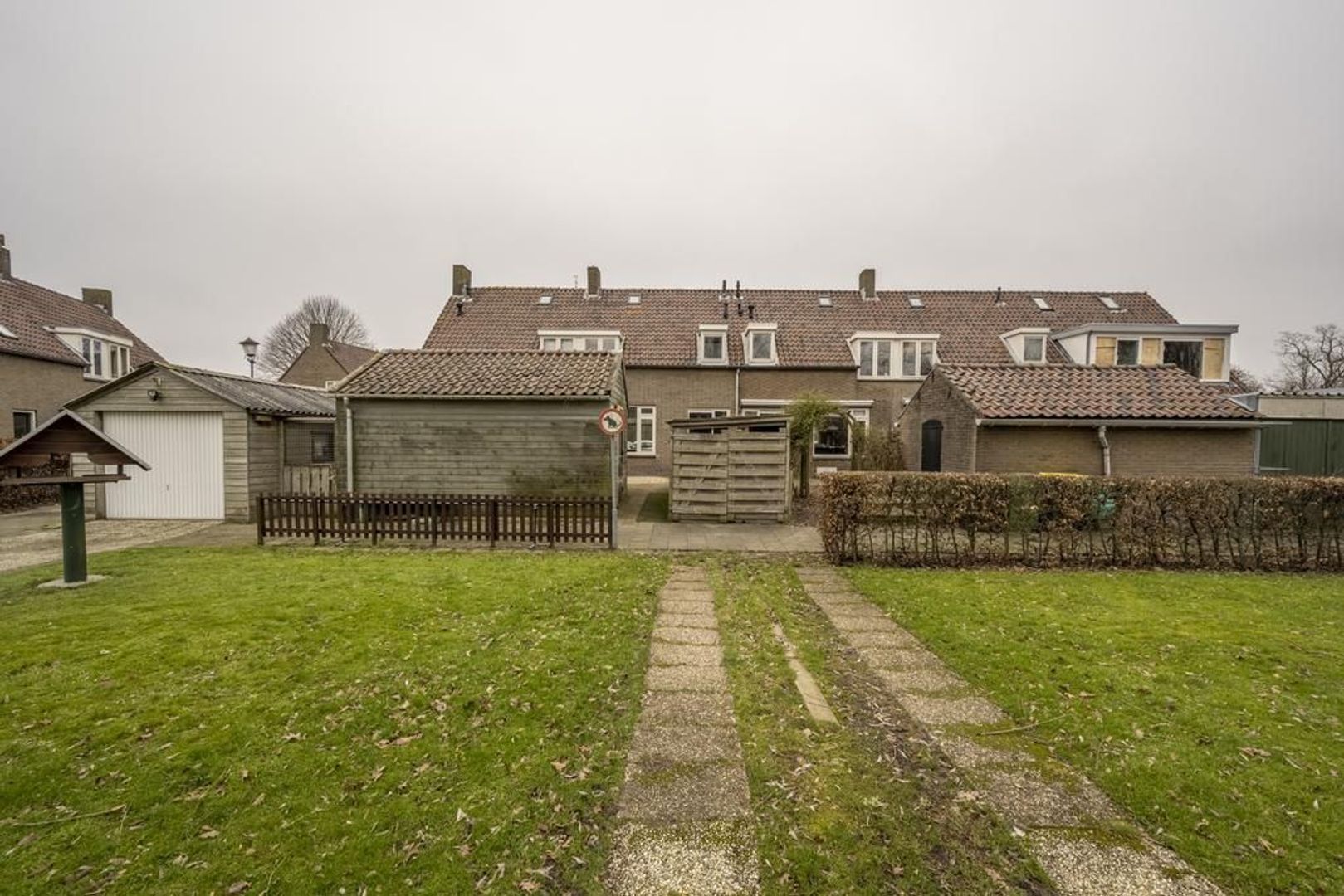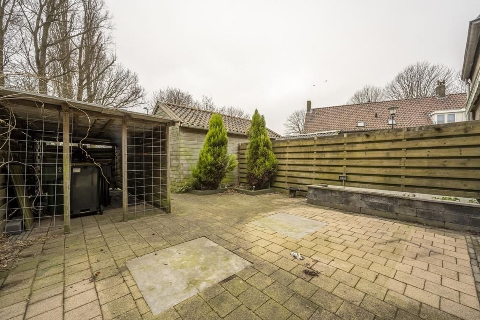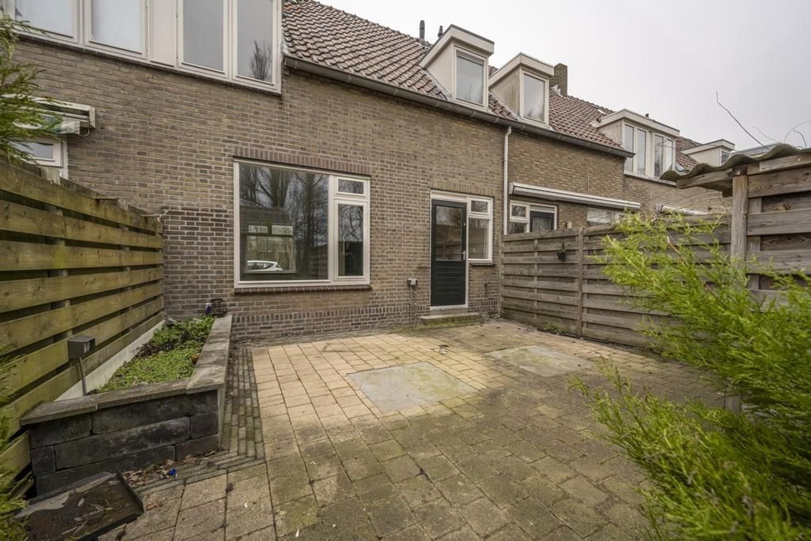 In de op het zuiden gelegen achtertuin staat een stenen berging.
