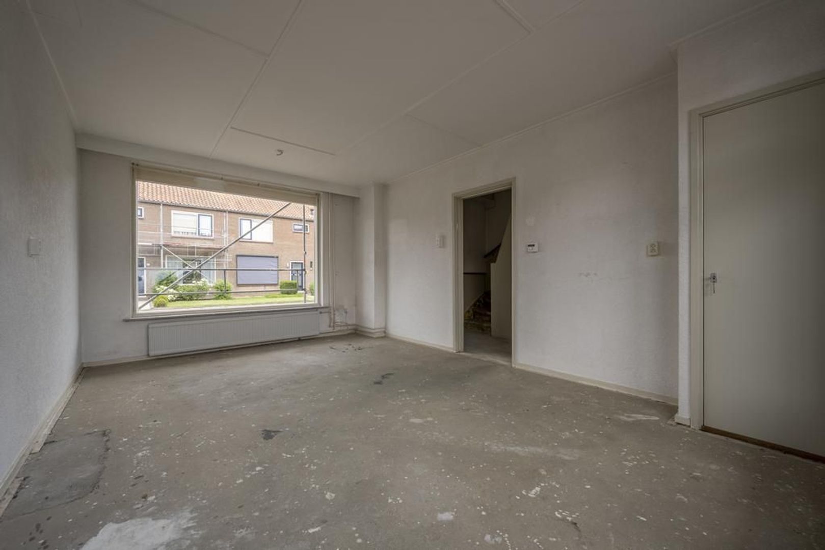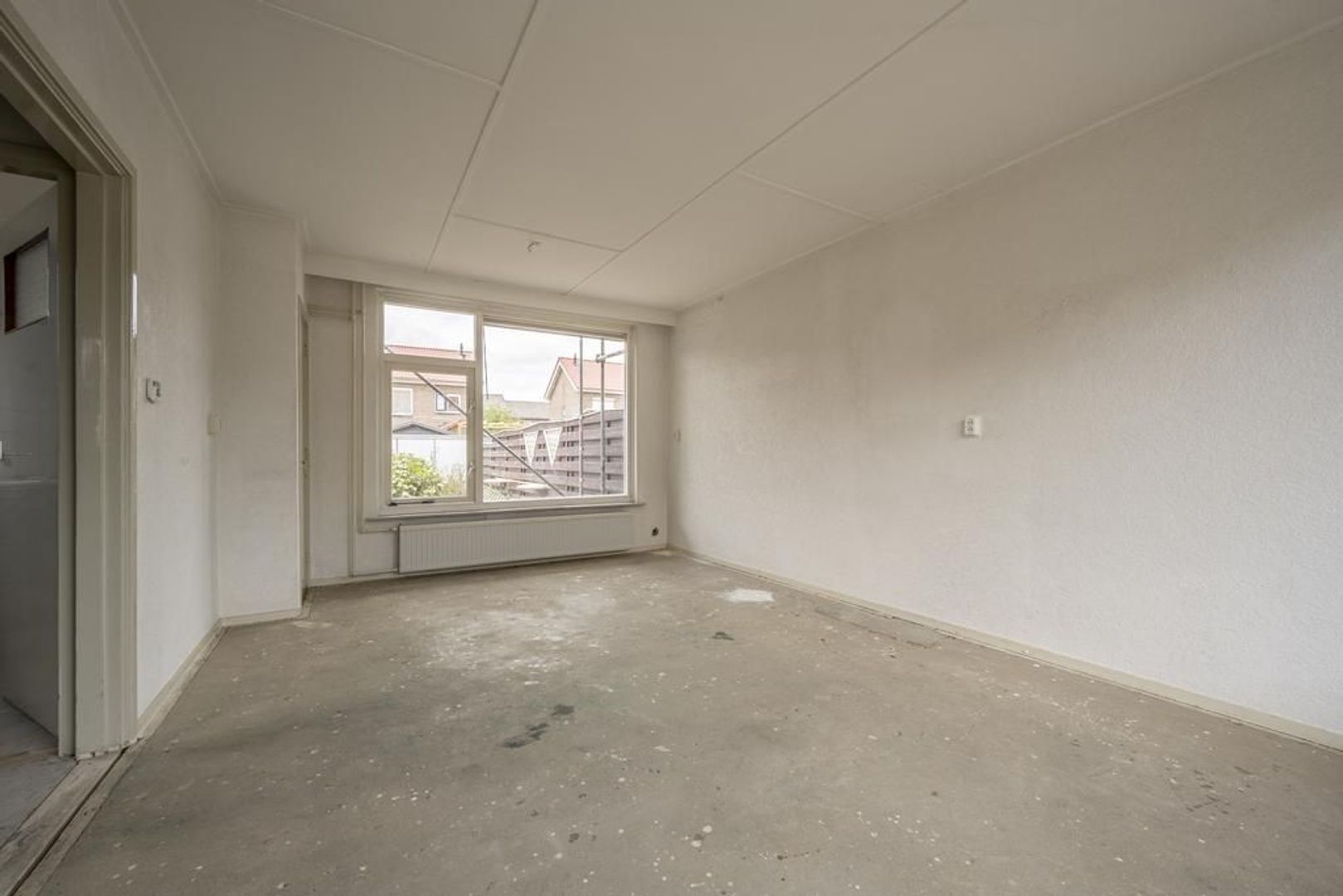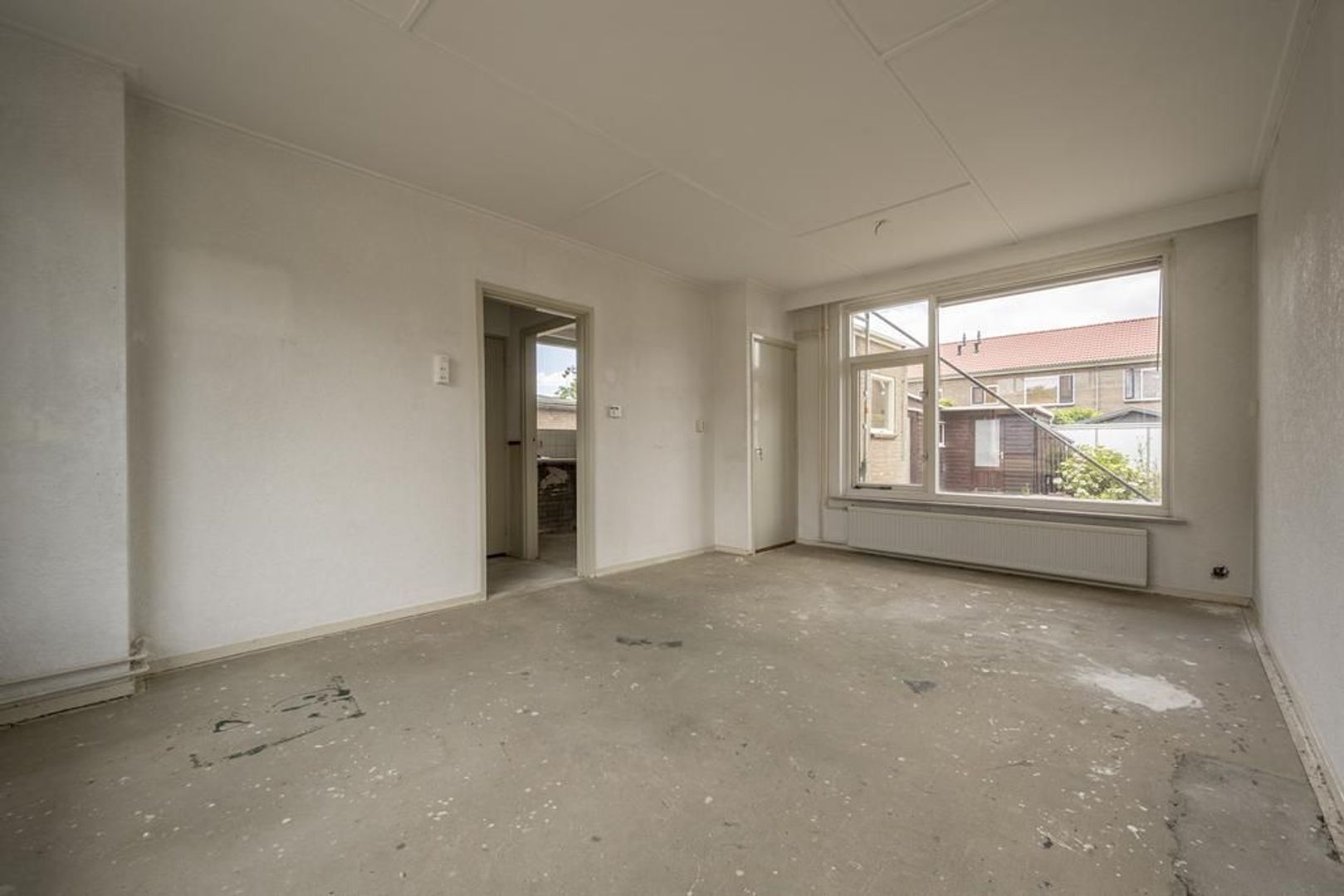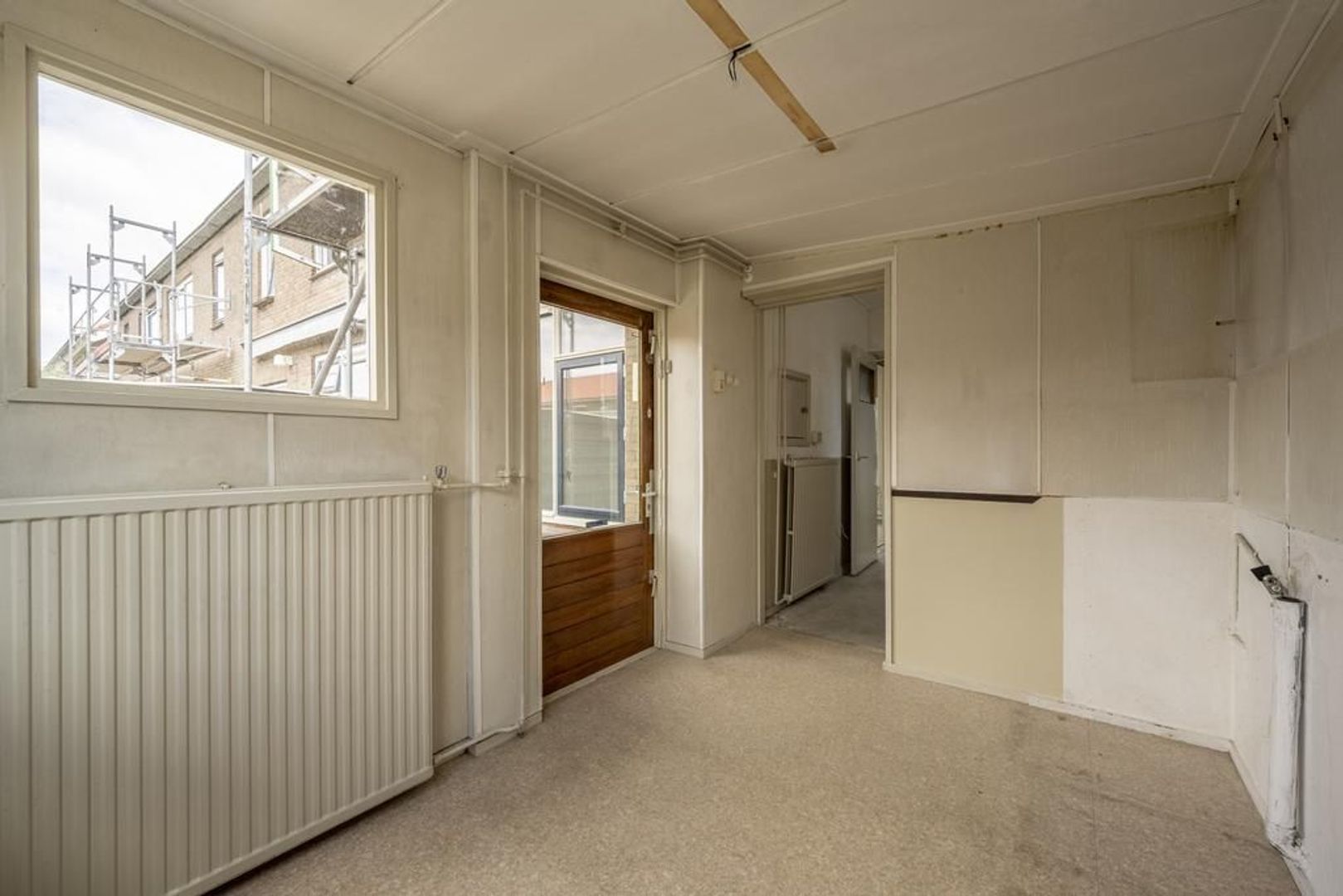 Doorzon woonkamer en de keuken. Door het raam in de zijgevel is dit een fijne, lichte ruimte. Vanuit de keuken is de bijkeuken te bereiken. Hier is de aansluiting voor de wasapparatuur.