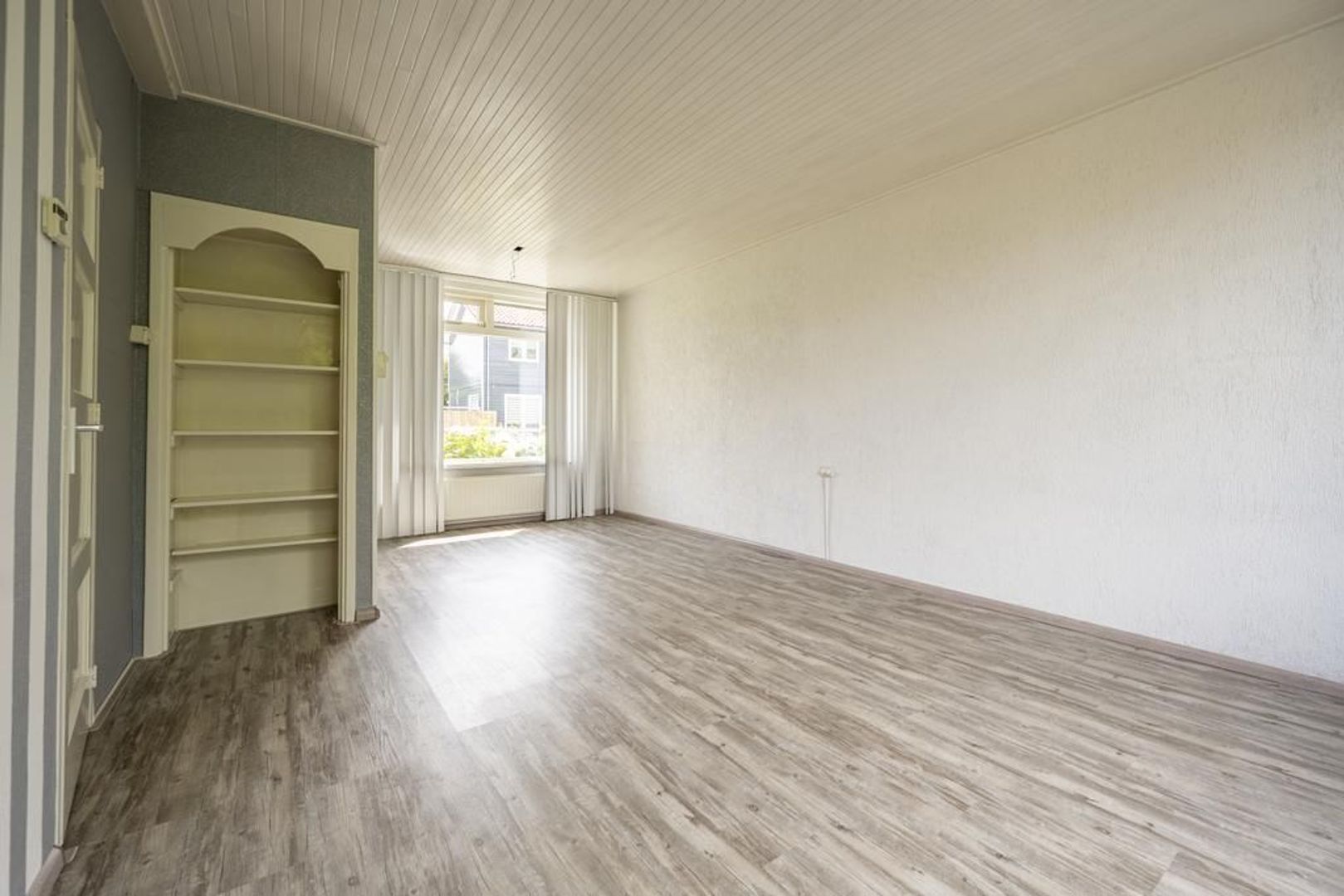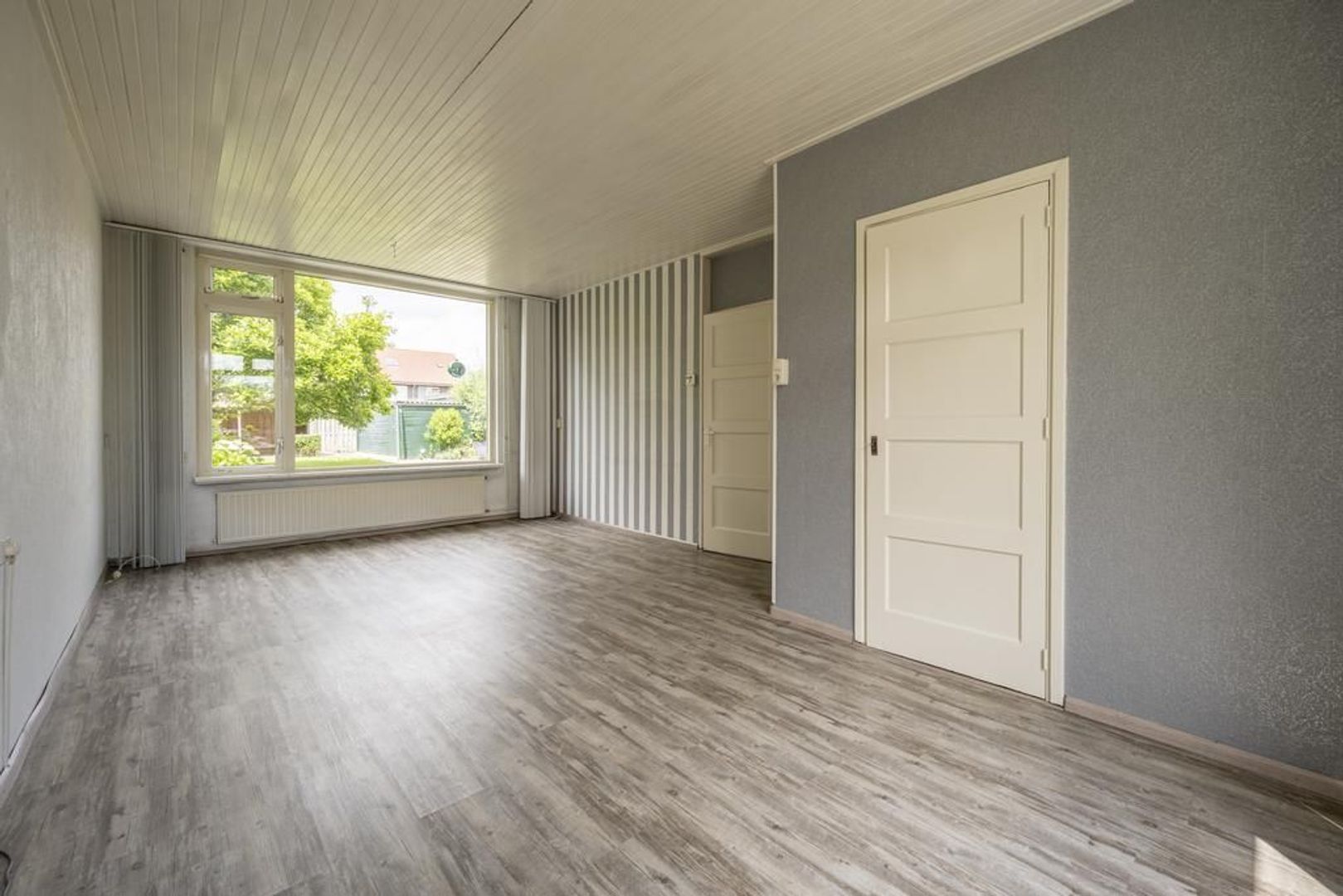 De vloeren zijn afgewerkt met laminaat.