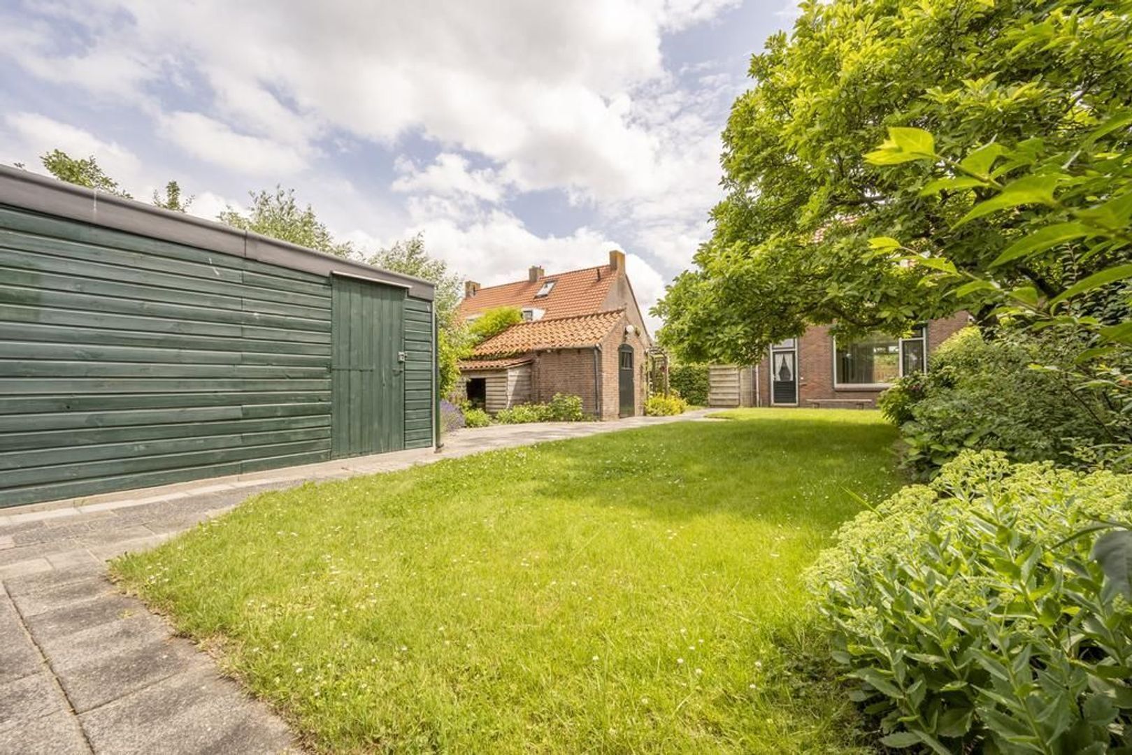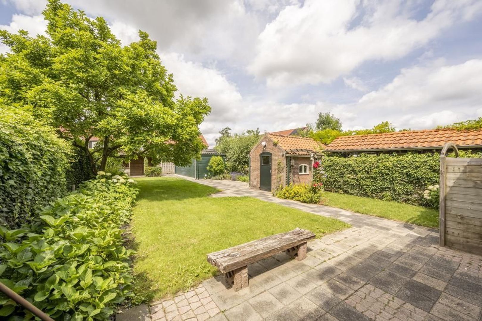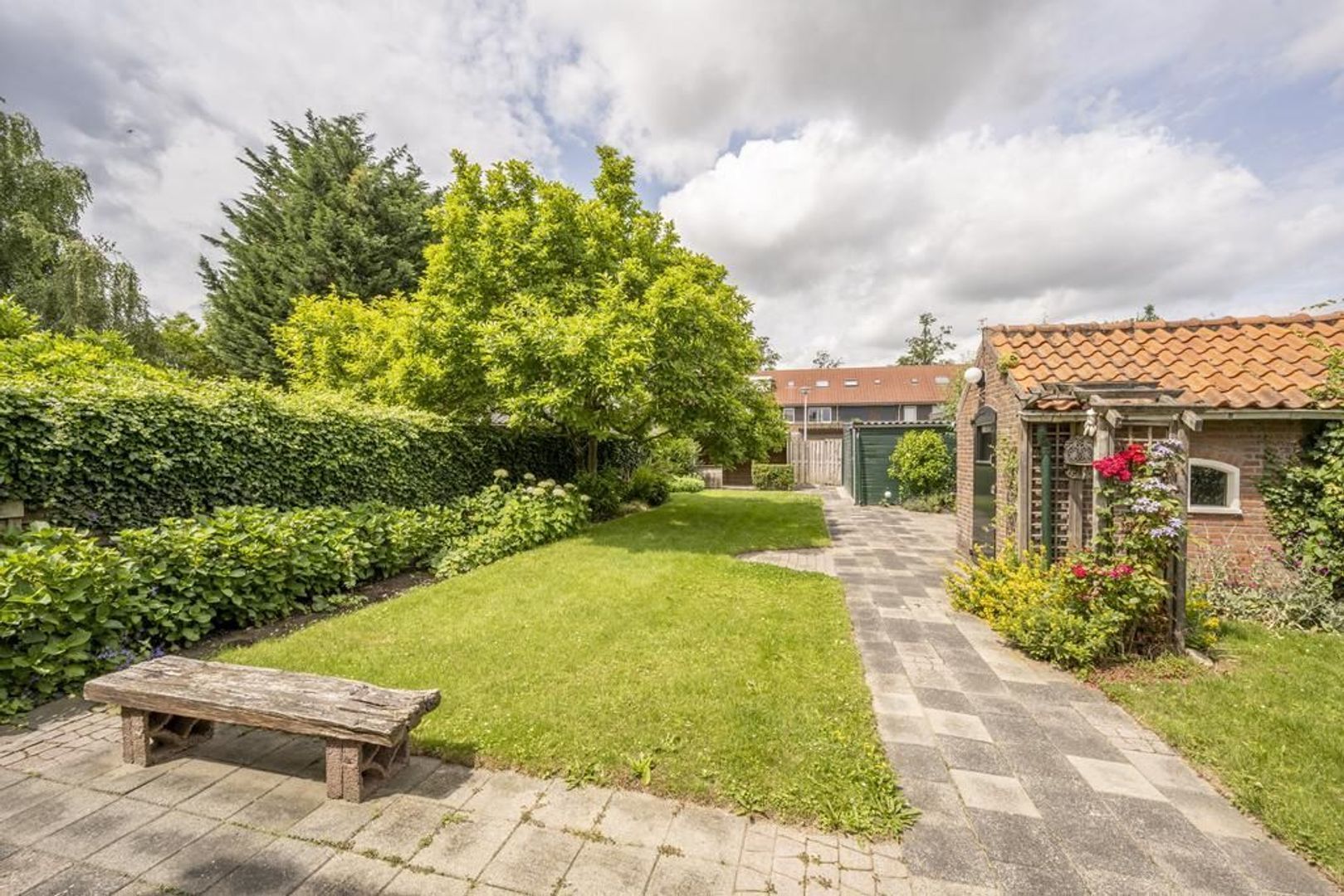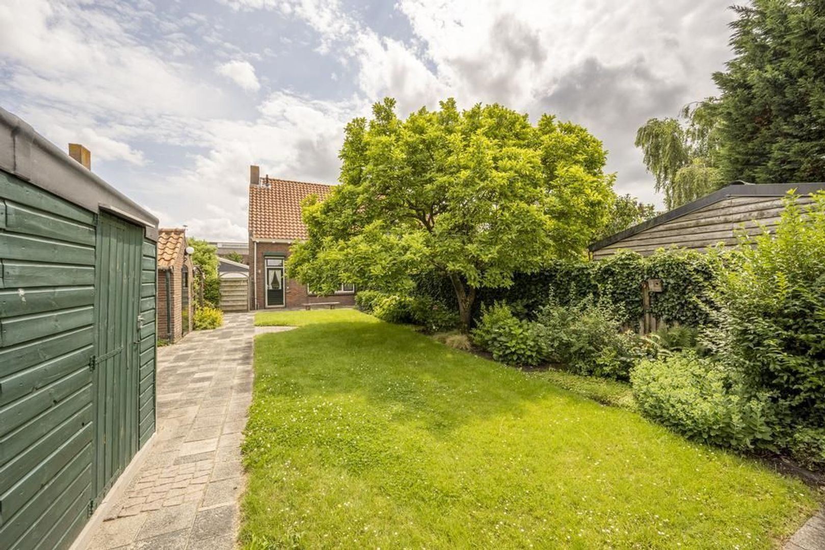 De tuin is maar liefst 23 meter diep en ligt op het westen. Hierin staan een houten garage en een stenen berging. De woning is voorzien van houten ramen en kozijnen met dubbel glas en wordt centraal verwarmd (Nefit 2010).