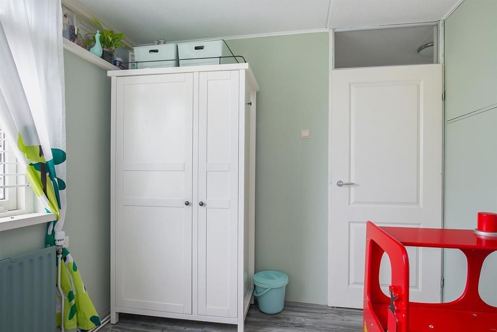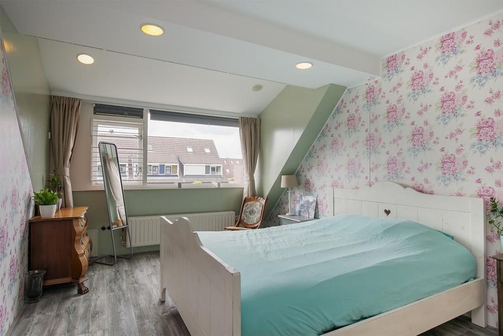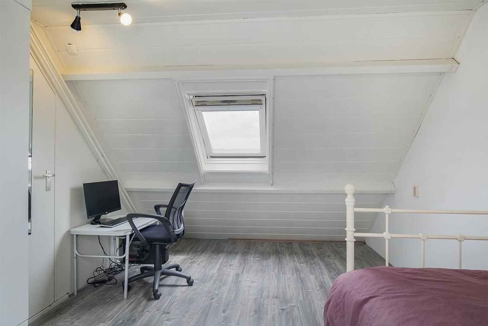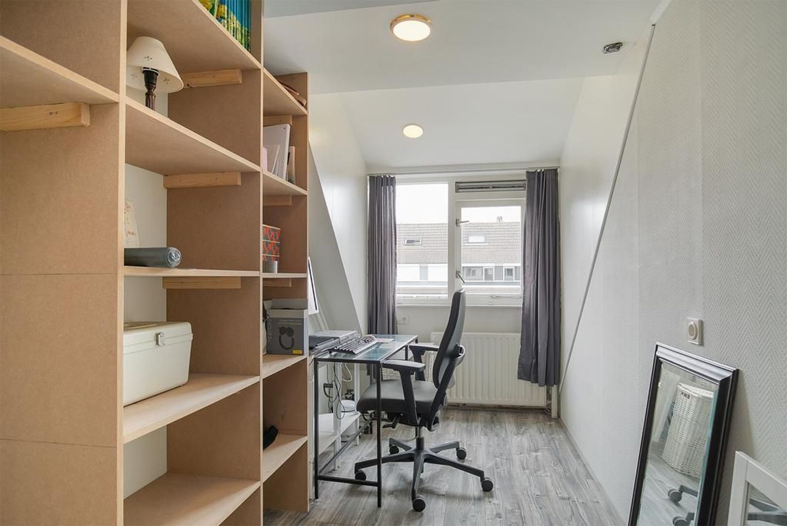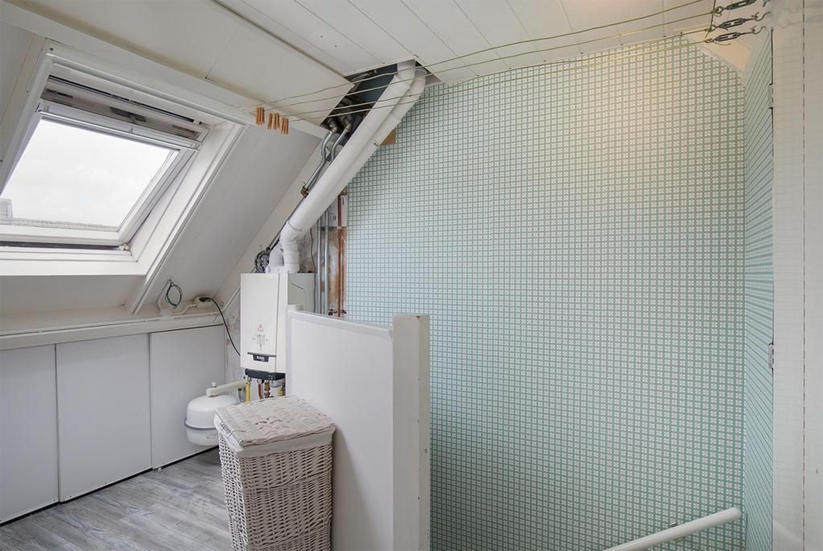 Op de tweede verdieping is een grote voorzolder met de aansluiting voor de wasmachine en de cv-ketel en een extra slaapkamer.