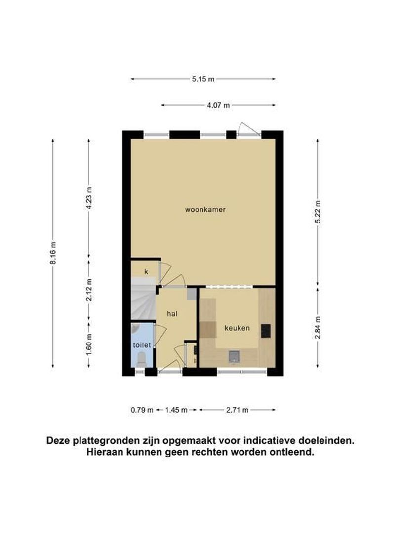 De indeling is als volgt: entree/hal met trapopgang naar de eerste verdieping, meterkast en toiletruimte (2014).
