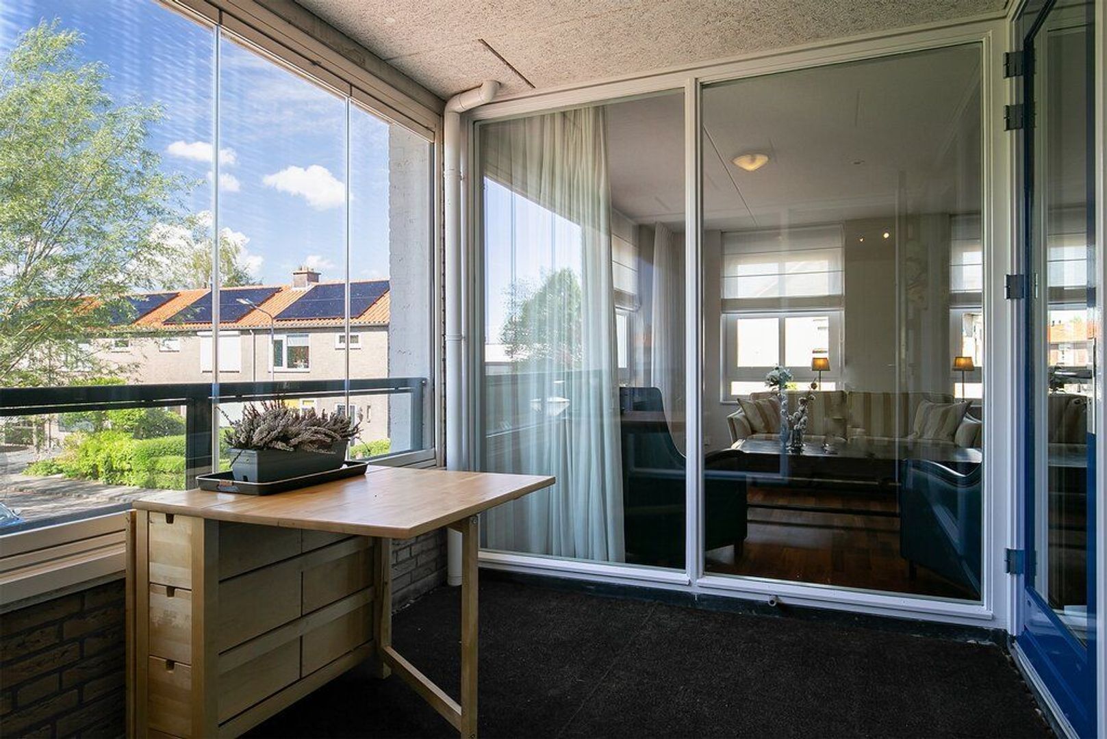De woonkamer geeft toegang tot de loggia/inpandig balkon. Deze is af te sluiten middels een glazen schuifscherm. Hier is het heerlijk vertoeven.
