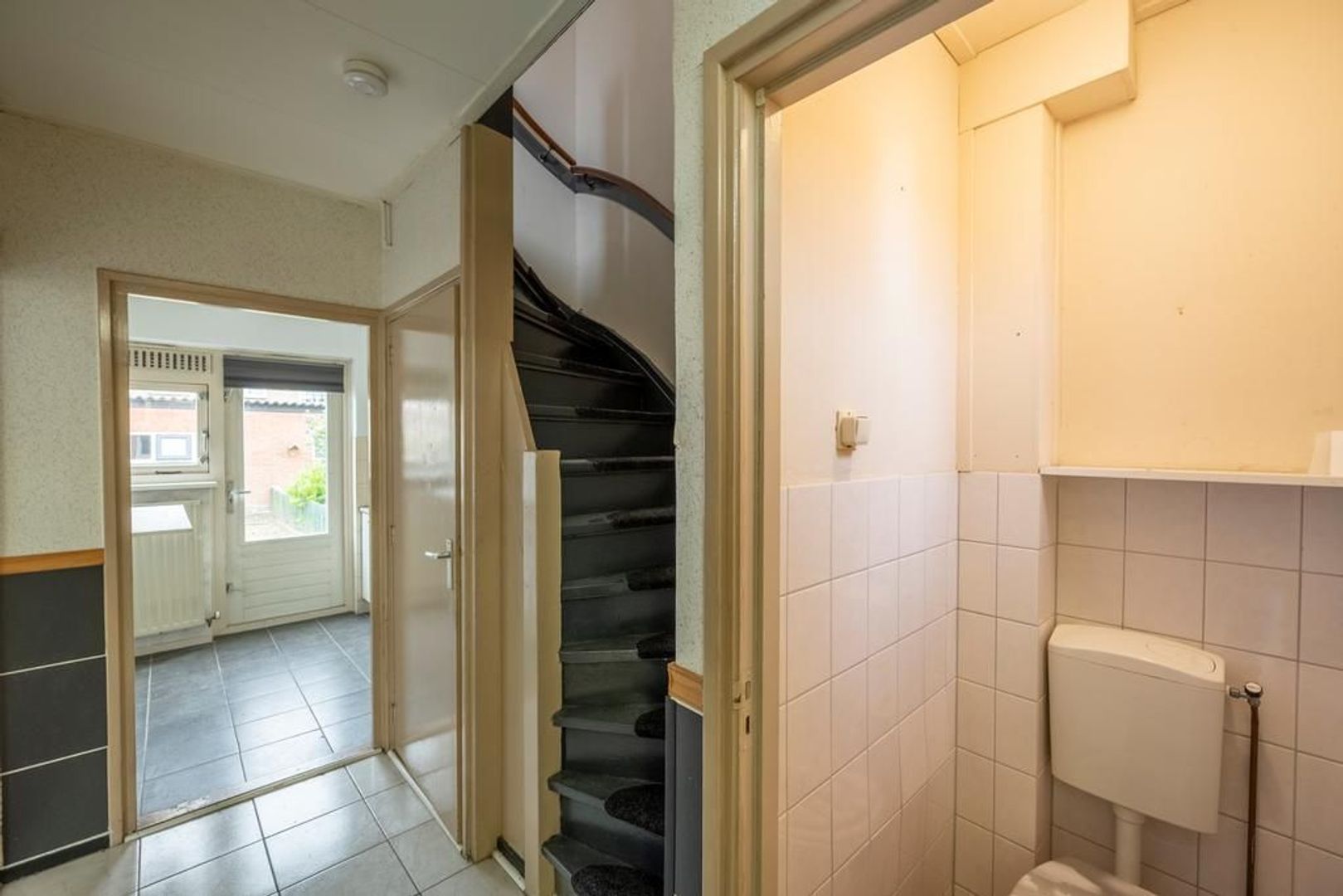 De indeling is globaal als volgt: entree, hal met toiletruimte, meterkast, trapopgang en trapkast. Dichte keuken met eenvoudige wandopstelling. Doorzonwoonkamer.