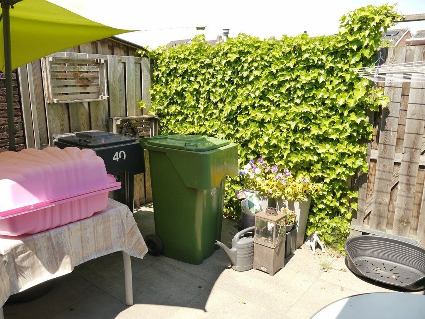 De achtertuin is klein maar biedt genoeg ruimte voor een tuinset.