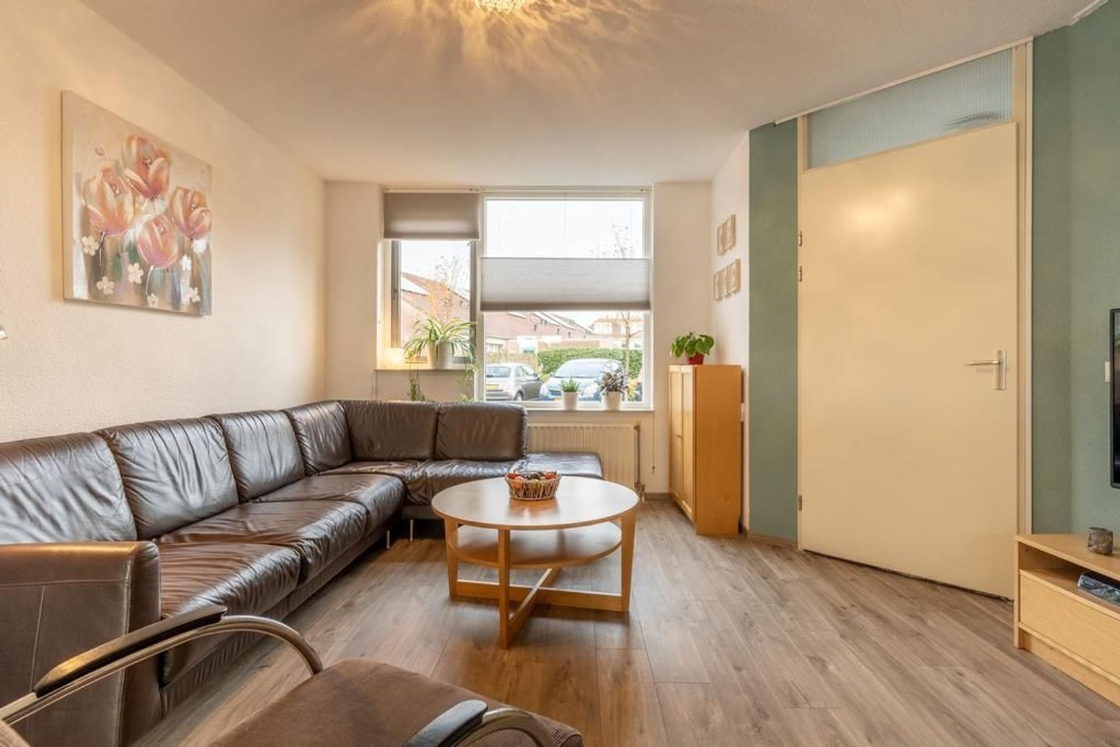 De begane grond is afgewerkt met een eigentijdse pvc-vloer.