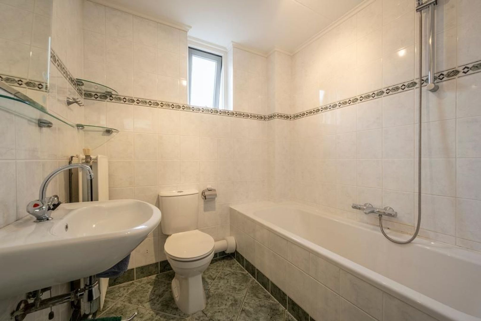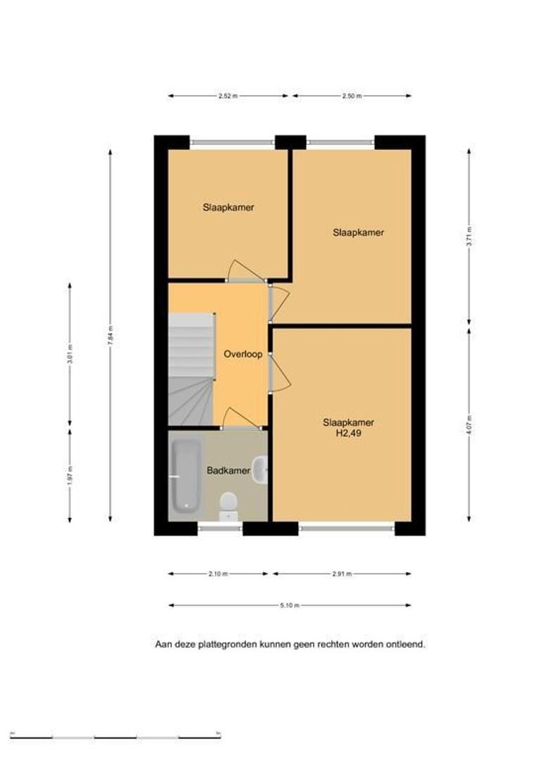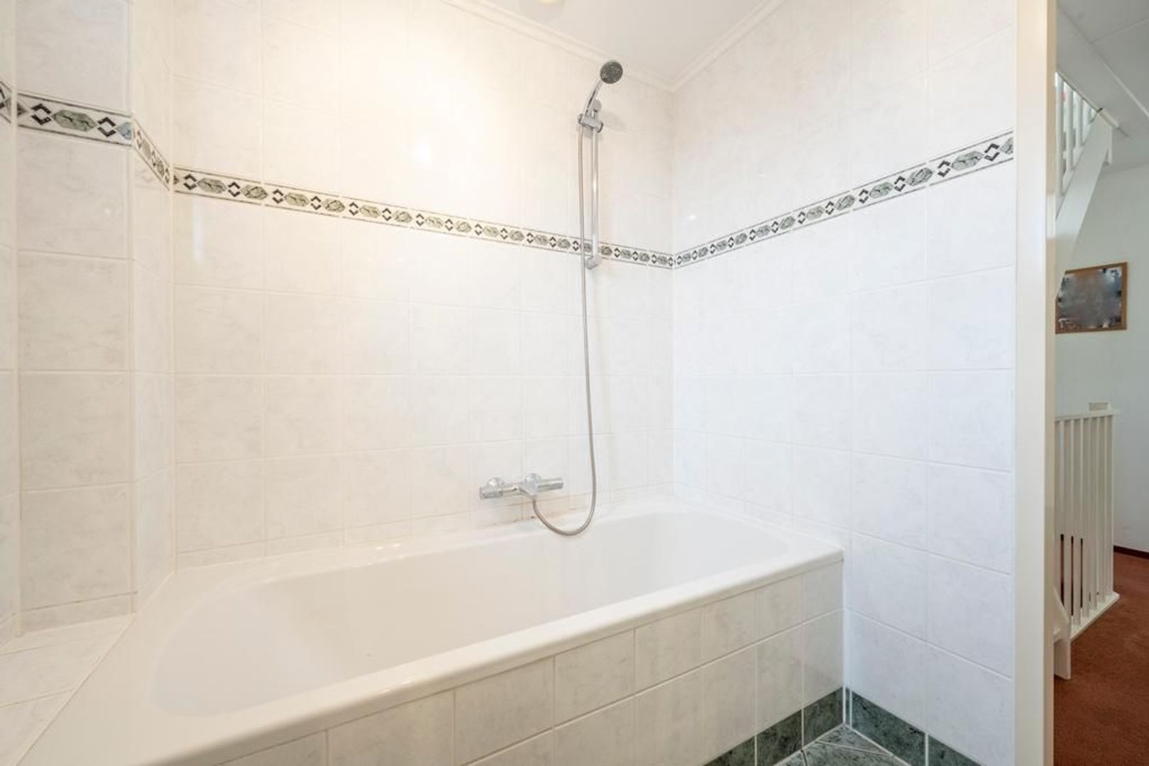 Op de eerste verdieping zijn drie slaapkamers en de badkamer. Deze is ingericht met een ligbad met wanddouche, een tweede toilet en een vaste wastafel. Het raam is prettig voor wat extra frisse lucht en ventilatie in de ruimte.