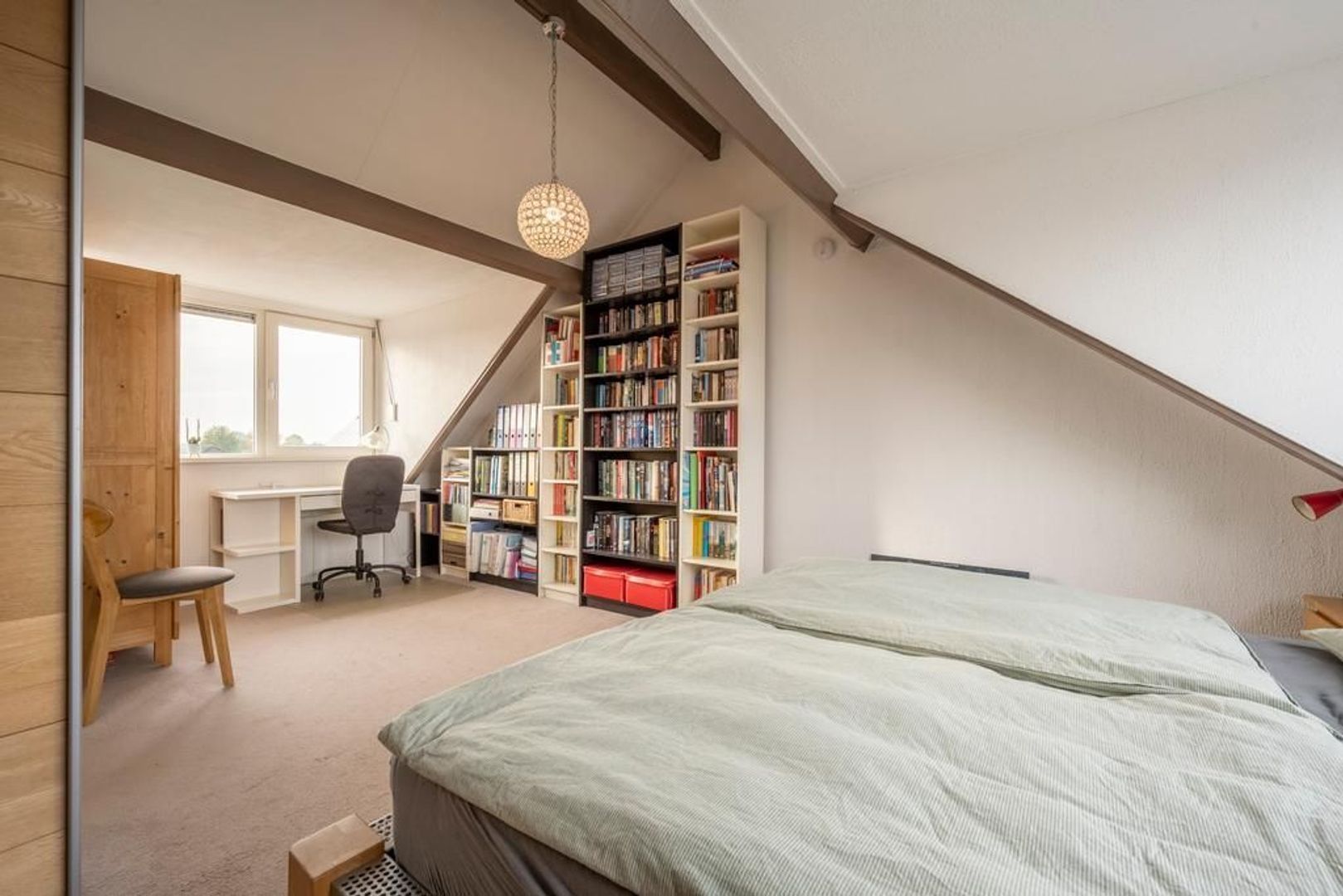 Op de voorzolder is ruimte voor de mechanische ventilatie, de cv-ketel en de wasmachine. De vierde slaapkamer is mooi ruim.
