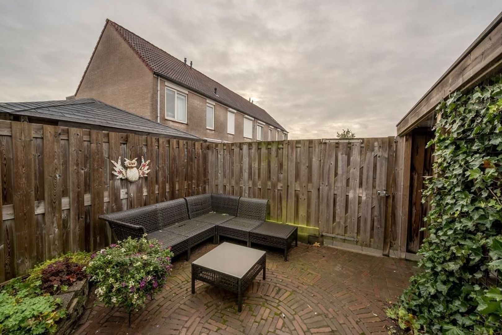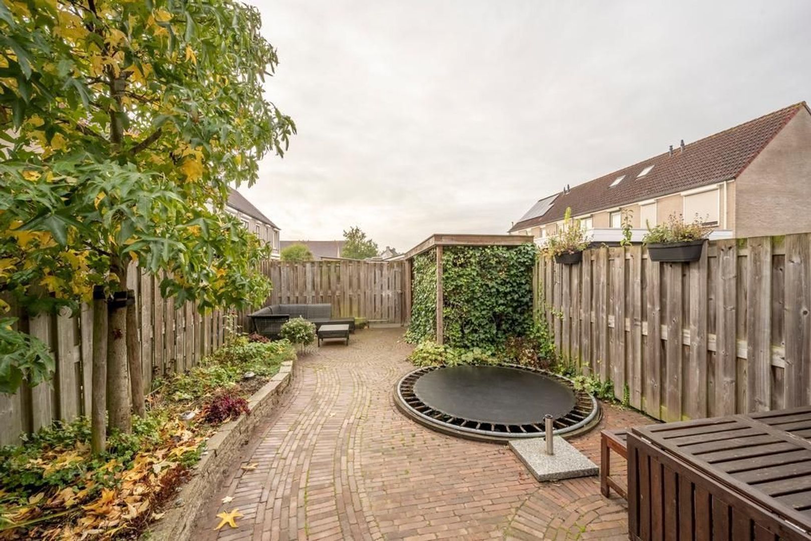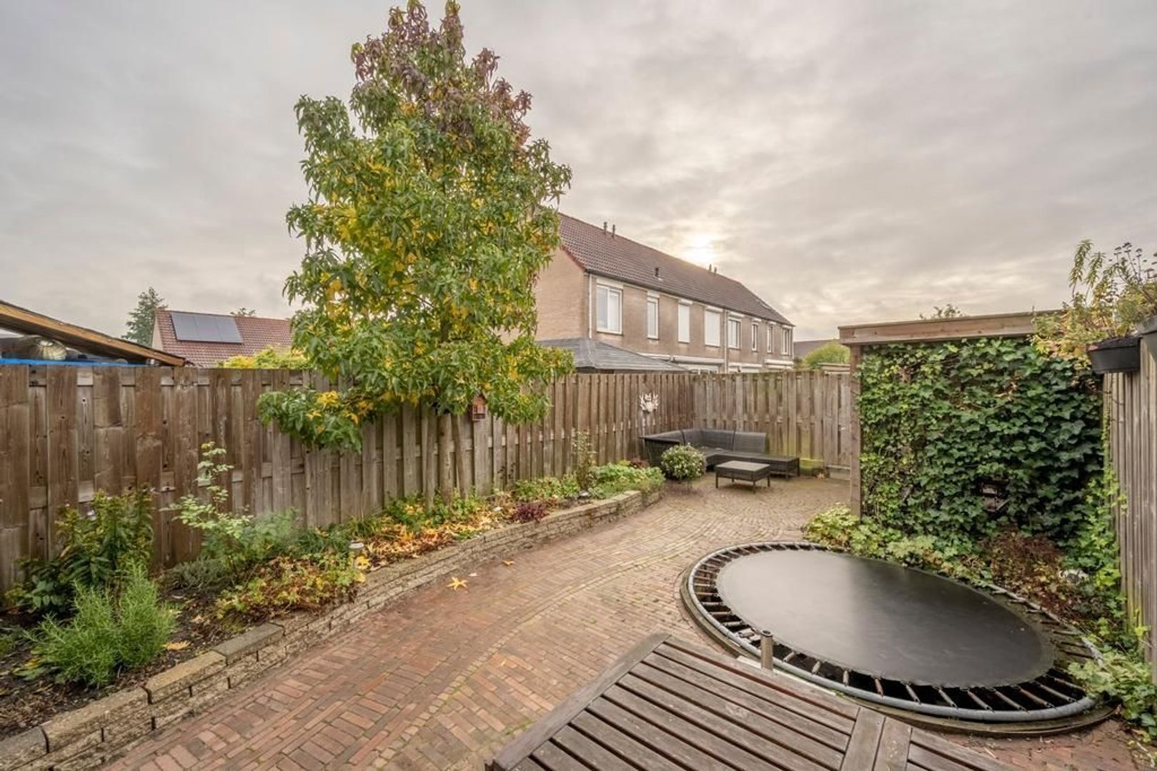 De achtertuin ligt op het zuiden. Deze is onderhoudsvriendelijk ingericht. Achterin staat een houten berging.