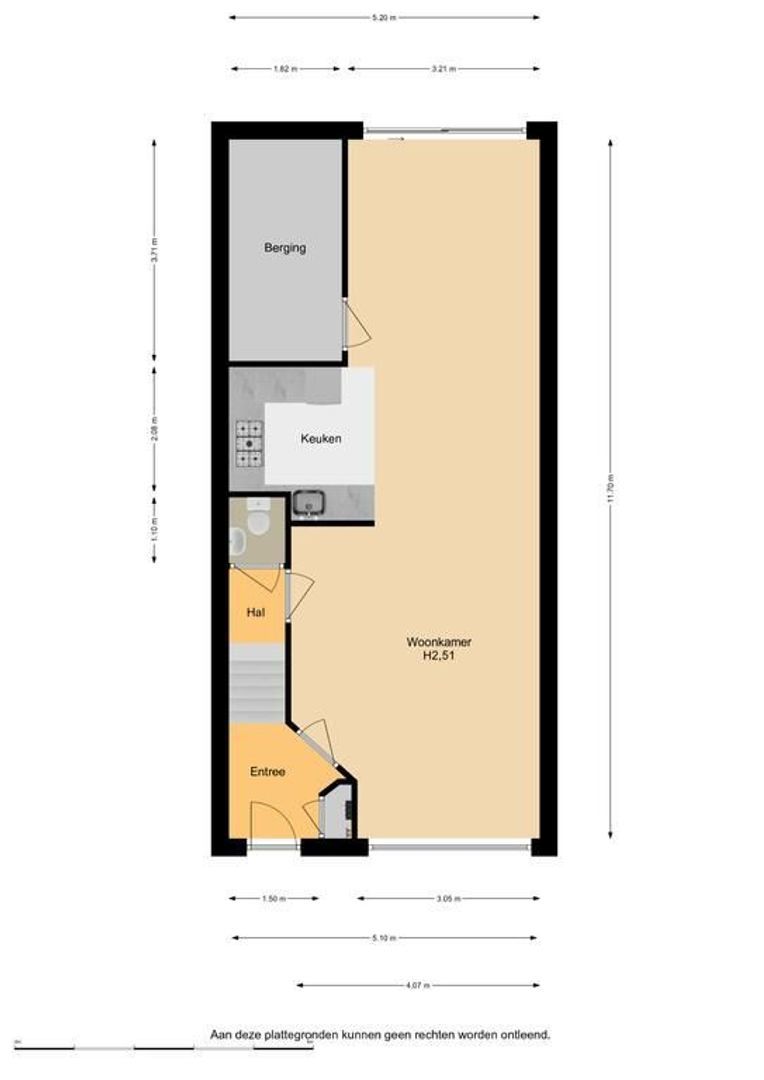 De indeling is als volgt: entree, hal met meterkast, toiletruimte en trapopgang.
