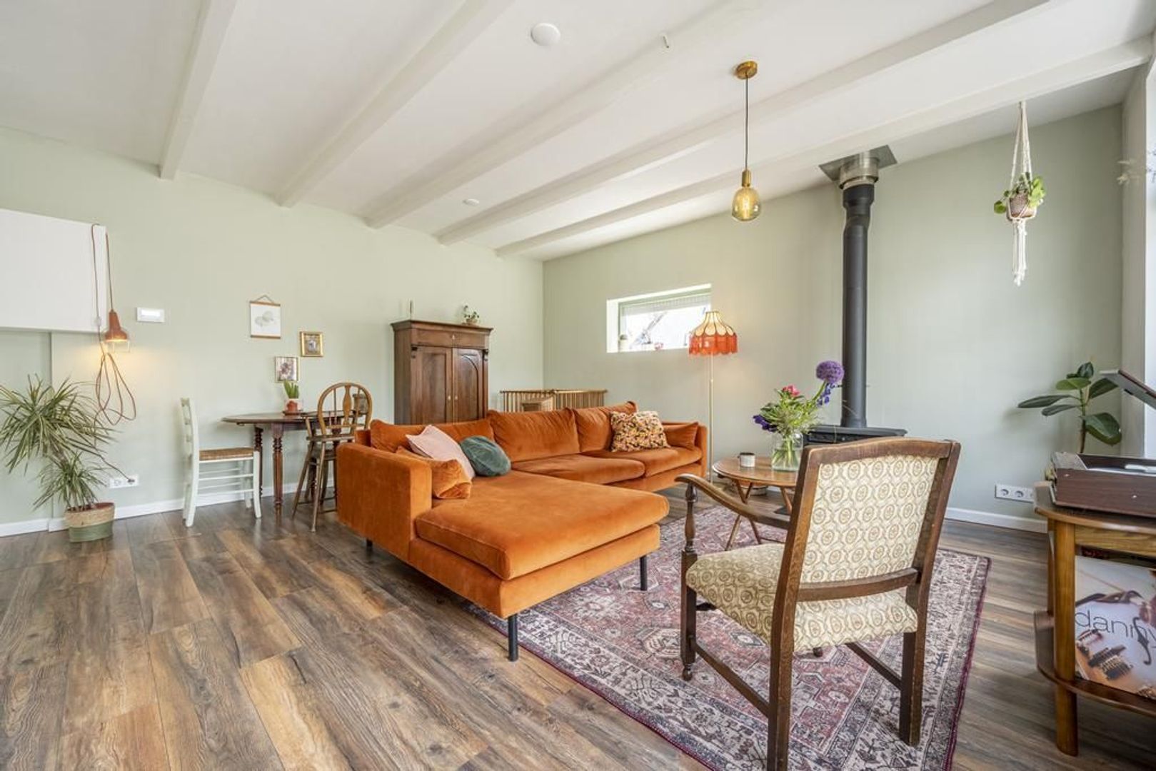De indeling is als volgt: entree, hal met toegang tot de woonkamer met houtkachel, balken plafond en eigentijdse laminaatvloer.